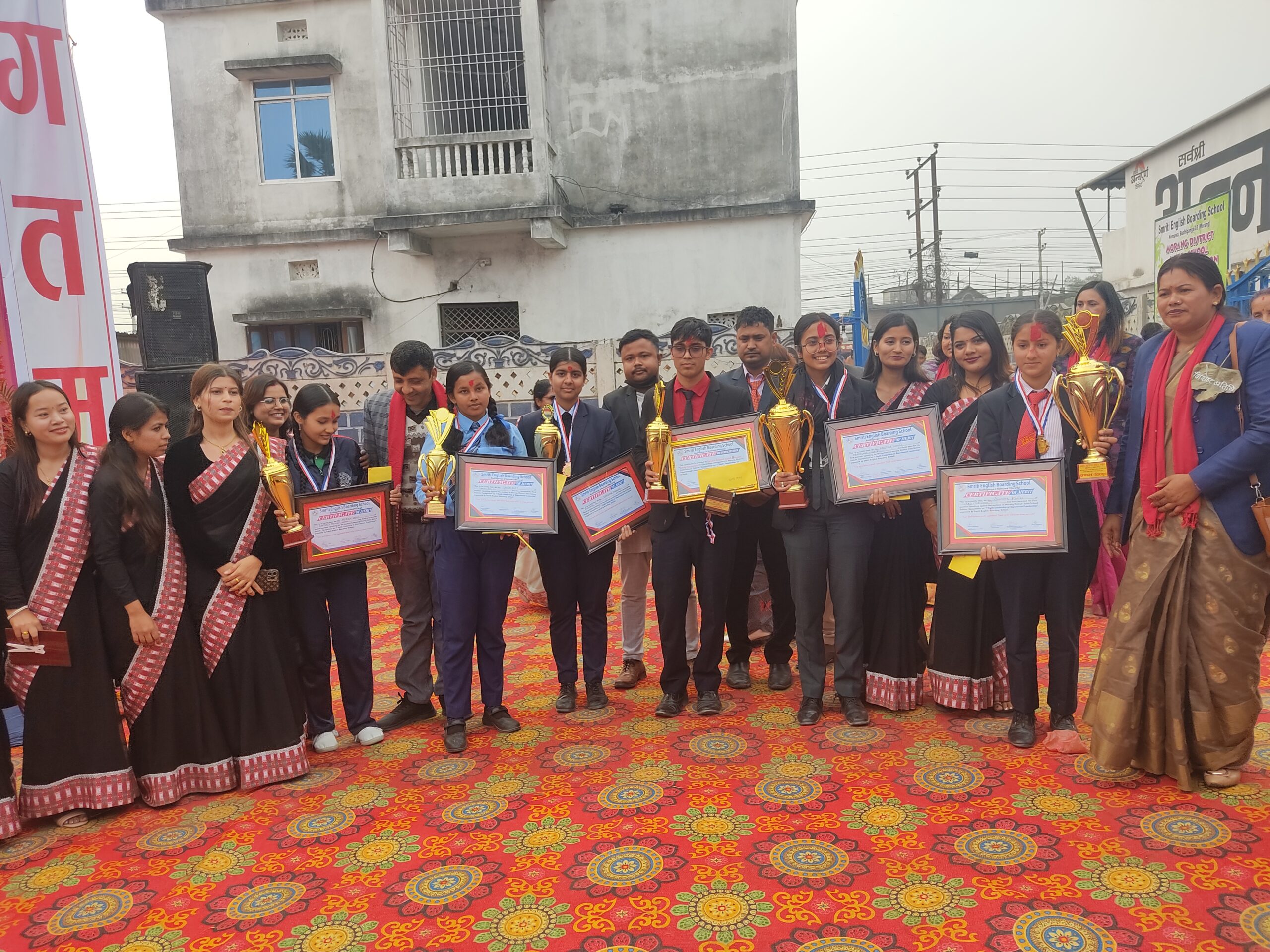 प्रतियोगितामा पक्ष र विपक्षका प्रथम(, दोस्रो र तेस्रो स्थान हासिल गर्ने विजयी छात्र छात्राहरुलाई क्रमशः १३ हजार, ९ हजार १सय तथा ३ हजार ६ सय रुपैयाँ नगदसहित कप, ट्रफी, मेडल र प्रमाणपत्र सहितले विराटनगर महानगरकी उपप्रमुख शिल्पा निरौला कार्की, बुढीगंगा गाउँ पालिकाकी उपप्रमुख अमृता कुमारी गच्छेदार, स्मृति इङलिस बोर्डिङ स्कुलकी रीता न्यौपाने लगायतले पुरस्कार प्रदान गर्नुभएको थियो।