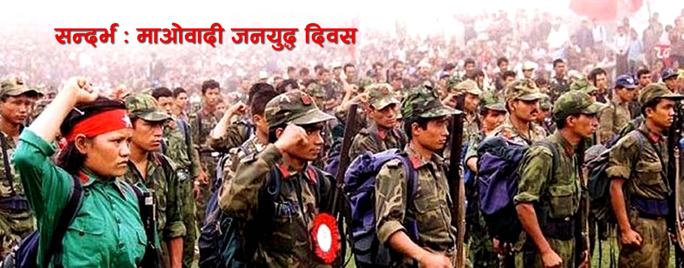 नेपाली जनताको सुख–दुःखमा साथ दिने र अन्याय–अत्याचारका बिरुद्धमा सत्य र न्यायको पक्षमा दृढतापूर्वक अघि बढ्ने कसम खाँदै २०५२ साल फागुन १ गतेदेखि तत्कालीन नेकपा (माओवादी)ले जनयुद्ध शुुरु गरेको थियो । ‘राज्यसत्ता बाहेक अरू सबै भ्रम हो’ कमरेड माओको उद्धरण आत्मसात गर्दै ‘बुर्जुवा संसदीय व्यवस्थाको विकल्पमा नयाँ जनवादी राज्यव्यवस्था स्थापना गरौं’ भन्ने नाराका साथ स्थानीय सामन्तका बिरुद्धमा तोडफोड, आगजनी, हत्या र हिंसासहित शुरु भएको सशस्त्र संघर्षलाई माओवादीले जनयुद्ध घोषित गरेर फौजी कारवाहीलाई निरन्तरता दियो । त्यसपछि राज्यका तर्फबाट माओवादी र सर्वसाधारण नागरिकमाथि प्रतिहिंसाका चक्र चलाइयो । फलस्वरूप १६ हजारभन्दा बढी नेपालीको ज्यान गयो भने पाँच हजारभन्दा बढी हालसम्म पनि बेपत्ताको अवस्थामा छन् ।