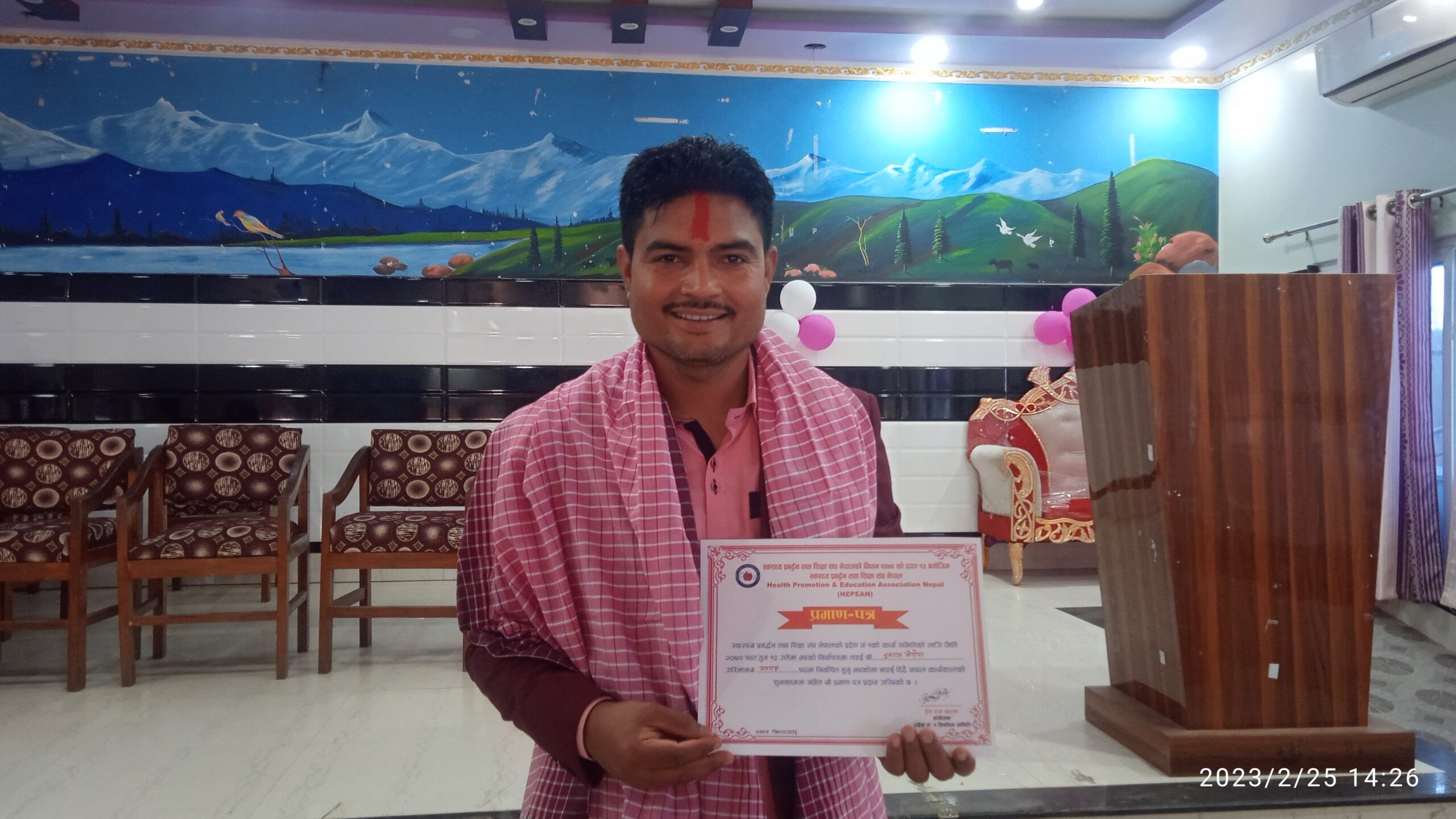 स्वास्थ्य प्रवद्र्धन तथा शिक्षा संघका केन्द्रीय उपाध्यक्ष एवम् सुदूरपश्चिम प्रादेशिक स्वास्थ्य प्रवद्र्धन केन्द्रका प्रमुख हेमराज खड्काको अध्यक्षतामा आयोजित भेलाको १ नं प्रादेशिक स्वास्थ्य तालिम केन्द्र धनकुटाका निर्देशक रोहितकुमार पाण्डेले उद्घाटन गरेका थिए ।
