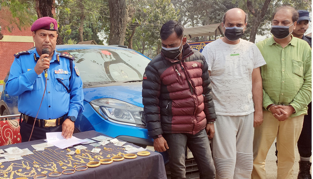 चितवन प्रहरीले बुधबार दिउँसो भरतपुरको जिल्ला प्रहरी कार्यालय परिसरमा पत्रकार सम्मेलन राखेर बरामद भएका गहना, कार र नियन्त्रणमा लिएका व्यक्तिहरू सार्वजनिक गरेको हो । सुन जस्तो देखिने विभिन्न प्रकारका ११ थान गहना, हिरा जस्तो देखिने ७ थान गहना र ३६ थान विभिन्न खाले पत्थरहरूसहित मंगलबार राति १ बजे उनीहरूलाई महेन्द्र राजमार्गको भरतपुर महानगरपालिका–१२ गोन्द्राङबाट नियन्त्रणमा लिएको चितवन जिल्ला प्रहरी कार्यालयका प्रवक्ता डिएसपी विजयराज पण्डितले जानकारी दिए ।