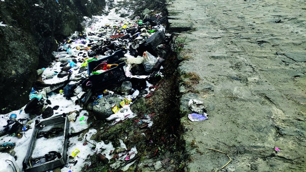 उहाँका अनुसार बस्ती आसपासमा पनि घरबाट निस्कने फोहरको सङ्कलन र व्यवस्थापन नभएको देखिएको छ । यात्राका क्रममा विभिन्न ठाउँमा टिनका टुक्रा, रक्सी तथा बियरका बोतल, प्लाष्टिकजन्यवस्तु यत्रतत्र देखिएको आचार्यको भनाइ थियो । यस क्षेत्रका व्यापारले समेत जथाभावी फोहर फाल्ने गरेको उहाँले बताउनुभयो । पाथीभरा क्षेत्रको माथिल्लो भागमा फोहर न्यून भए पनि बस्तीभन्दा तलको भागमा फोहजन्यवस्तु अत्यधिक देखिएको पाथीभरा दर्शन गरेर फर्किनुभएका एक दर्शनार्थीले बताउनुभयो ।