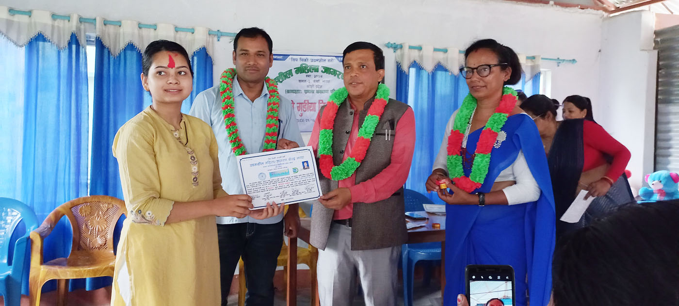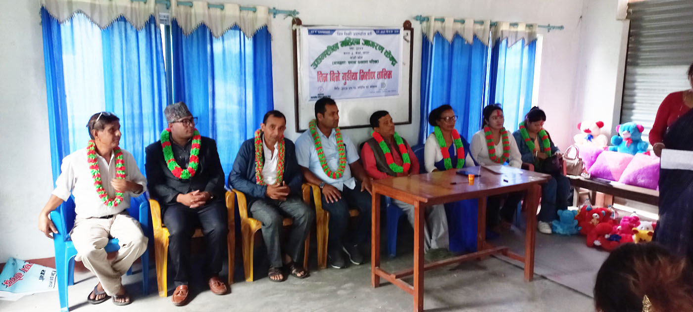 झापाको कमल गाउँपालिका ३ केर्खामा मुख्य कार्यालय रहेको उद्यमशील महिला जागरण केन्द्रको आयोजना तथा डिप्रोक्स लघुवित्त वित्तीय सस्था केर्खा शाखाको आर्थिक सहयोगमा सन्चालीत तिनदिने गुडीया निर्माण सम्बन्धी तालिम सोमवार सम्पन्न भएको छ ।