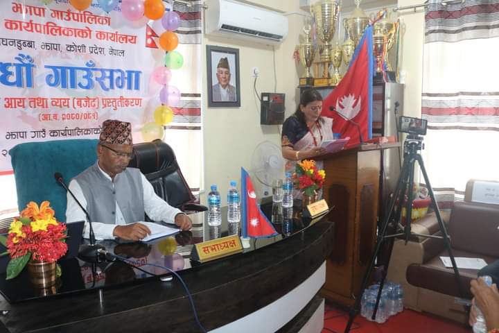 झापा गाउँपालिकाका अध्यक्ष जयनारायण साहको सभापतित्वमा सम्पन्न सभामा गाउँपालिकाकी उपाध्यक्ष अन्जुदेवी थपलियाले गाउँपालिकाको चौधौं गाउँ सभा मार्फत गाउँपालिकाको आर्थिक वर्ष २०८०र०८१ को बजेट प्रस्तुत गर्नुभएको हो ।