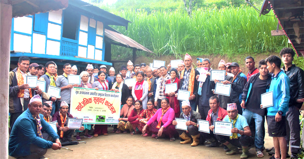 किसान प्रोत्साहन तथा सार्वजनिक सुनुवाई कार्यक्रमका प्रमुख अतिथि वडाध्यक्ष मीनराज श्रेष्ठ विशेष अतिथि वडा सदस्य केशरबहादुर पौडेलले पशुपालन व्यावसायमा उत्साह जगाउँदै आधुनिक किसिमले उन्नत जातका गाई पालेर अनुदान रकम भित्र्र्याउन सफल बनेका उद्योग सञ्चालक बस्नेत लगायत सबै किसानलाई धन्यवाद तथा शुभकामना दिँदै प्रशंसापत्र प्रदान गरेका थिए ।