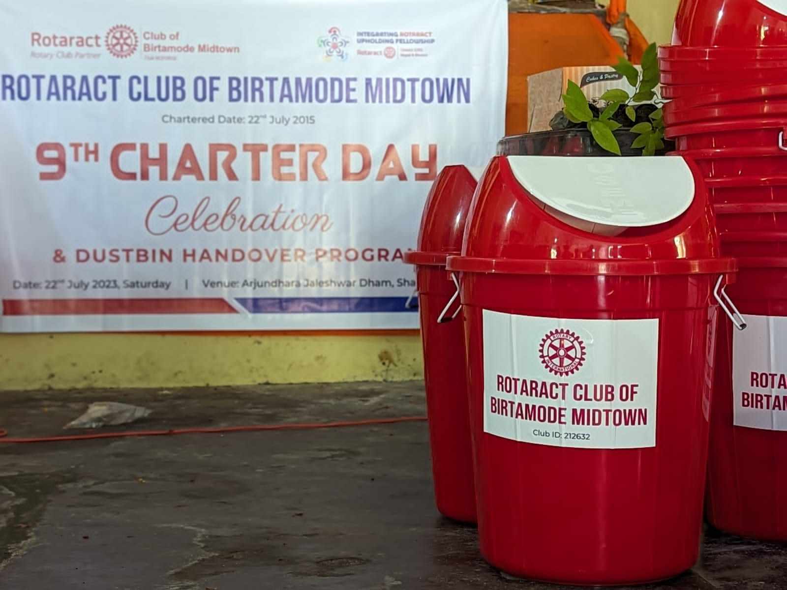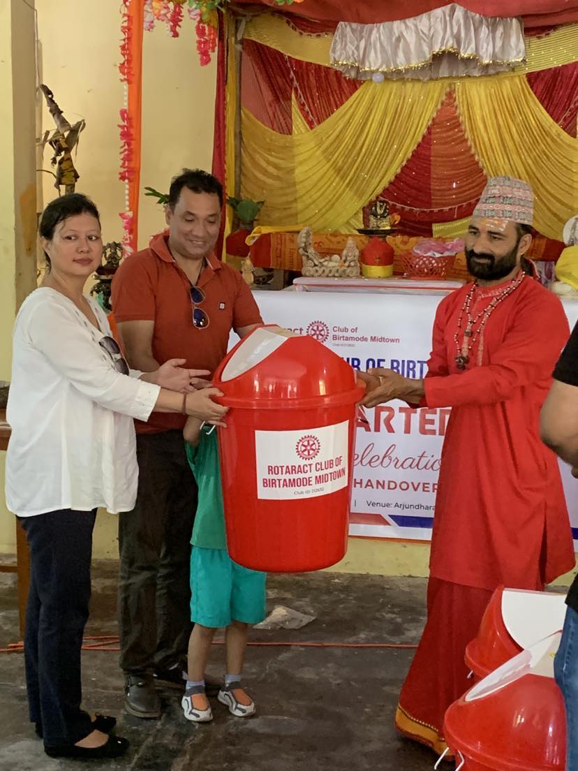 रोटर्याक्ट क्लब अफ बिर्तामोड मिडटाउनले झापाको अर्जुनधारा जलेश्वर धाममा डस्टबिन वितरण गरेको छ । नवौँ चार्टर डे को अवसरमा धाम क्षेत्रको सरसफाईका लागि भन्दै डस्टबिन वितरण गरिएको हो ।