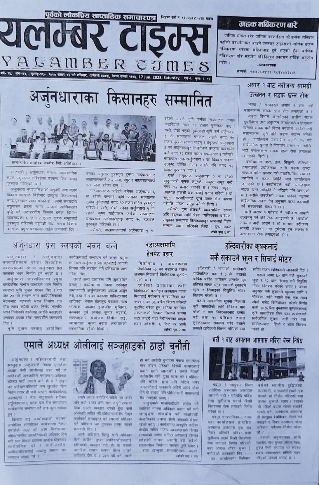 ग्रामिण भेगको आवाज र समस्यालाई निरन्तर उठाउन गर्दै आएको यलम्वर टाइम्स साप्ताहिक १६ औं वर्षमा प्रवेश गरेको छ ।