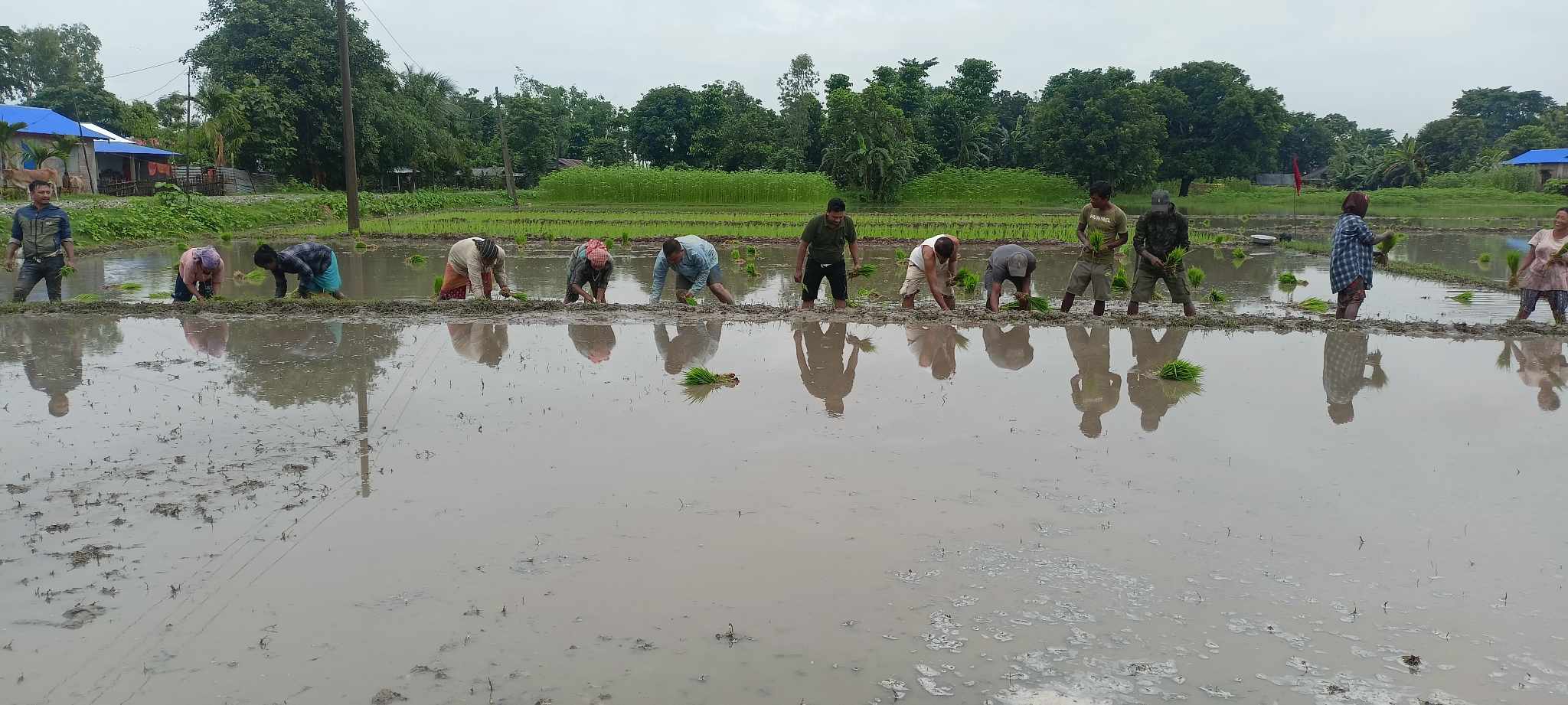 त्यस्तै नेकपाका कार्यकर्ताले इलाममा तीन हजारभन्दा बढी चियाका बिरुवा रोपेका छन् भने पाँचथरमा अम्लिसो, अदुवा लगायतका खेती पनि गरिरहेका छन् । पछिल्लो समय हरेक क्षेत्रलाई उत्पादनसँग जोड्नुपर्ने आवाजहरू उठिरहेका छन् । अनिवार्य श्रम र उत्पादनमा जोडेर केही बाँझो भूमिलाई हरियाली बनाउनुपर्छ भन्ने योजनाका साथ काम गरिरहेको सुमनको भनाइ छ । देशको ठूलो पुँजी विदेश गइरहेकाले अब आत्मनिर्भरको बाटो अपनाउनुको विकल्प नभएको भन्दै उनले भने– हाम्रो गाउँ–घरमा उत्पादन हुने वस्तुमा विदेशीको भरपर्दा परनिर्भरता बढ्छ । यसलाई न्यूनीकरण गर्न आत्मनिर्भर भएको बाटोतर्फ अब सबैलाई एकीकृत गर्नुछ । उनले आउँदो वर्षसम्ममा मेचीका सबै पालिकामा सामुहिक खेती गर्ने योजना रहेको बताए ।