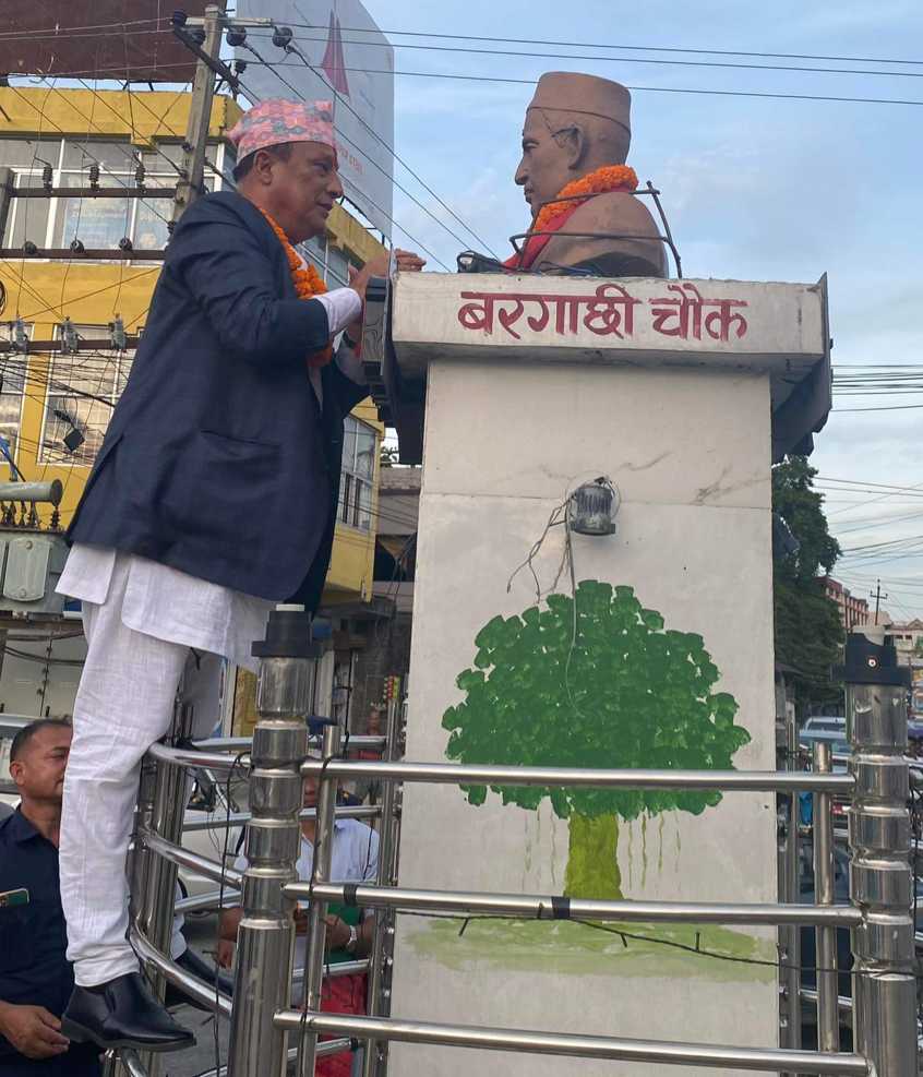 मुख्यमन्त्री थापा सहित गठबन्धन दलका तर्फबाट माओवादी केन्द्रबाट आर्थिक मामिला तथा योजना मन्त्री बनेका बाबुराम गौतम , काग्रेसबाट सिचाई उर्जामन्त्री बनेका प्रदिप सुनवार र नेकपा एसबाट भौतिक पूर्वाधार मन्त्री बनेका कमल जवेगुले पनि दुवै नेताको मूर्तीमा माल्यार्पण गरे ।