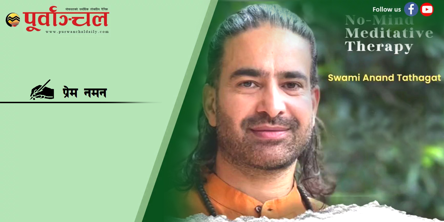 सम्यक भोजन, सम्यक विश्राम र सम्यक निद्राको अभावमा हामीले हाम्रो जीवनलाई अस्तब्यस्त र मानसिकरुपले नै रुग्ण बनाएका छौं । आज अमेरिका जस्तो सम्पन्न देशमा पनि प्रत्येक तीन जना व्यक्ति बराबर एक जनालाई मानसिक चिकित्साको आवश्यकता पर्न थालेको छ । हामीले बेलैमा यसमा सचेत नबन्ने हो भने भविष्य हाम्रो दिनदिनै अन्धकारतर्फ जाने निश्चित छ । आजको युगको जर्जर अवस्थाबाट मुक्त बन्नका लागि मेडिटेशन (ध्यान)भन्दा अर्को अचुक औषधि छैन । बृद्ध पुरुषले खास गरेर ओशोले सम्पूर्ण मनुष्य जातिका लागि सयौं ध्यानका विधिहरु दिनुभएको छ । शरीरलाई स्नान गरेर सफा गर्न त हामीले जानेका छौं । तर, मनको सफाई गर्ने कुरालाई चाहिँ बिर्सिएका छौं । ओशोको नो–माइन्ड थेरापीको प्रयोगले हामीलाई अशान्ती, तनाव, अनिन्द्रा र डिप्रेसन जस्ता समस्याबाट मुक्त गरी दिनेछ । सभ्यताका नाममा हामीले भावाबेगहरुलाई दमन गरेर राखेका छौं न हामी प्रेमलाई खुला रूपमा अभिव्यक्त गर्न सक्छौं न रिसलाई कसैमाथि पोख्न सक्छौं ।