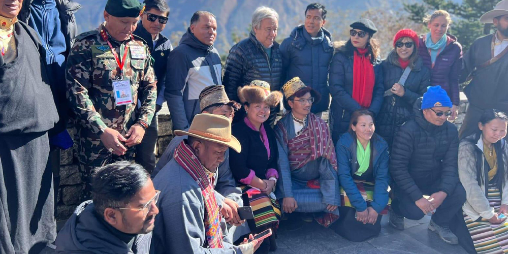 संयुक्त राष्ट्रसङ्घका महासचिव एन्टोनियो गुटेरेसले नेपालको हिमालमा जलवायु परिवर्तनले पारेको असरबारे विश्वको ध्यानाकर्षण गराउने प्रतिबद्धता व्यक्त गर्नुभएको छ । उहाँले आज बिहान खुम्बु पासाङल्हामु गाउँपालिका–४ का स्थानीय समुदायसँग जलवायु परिवर्तन र यसले स्थानीयको जनजीवनमा पारेको विषयका सम्बन्धमा अन्तक्र्रिया गर्नुभएको थियो ।