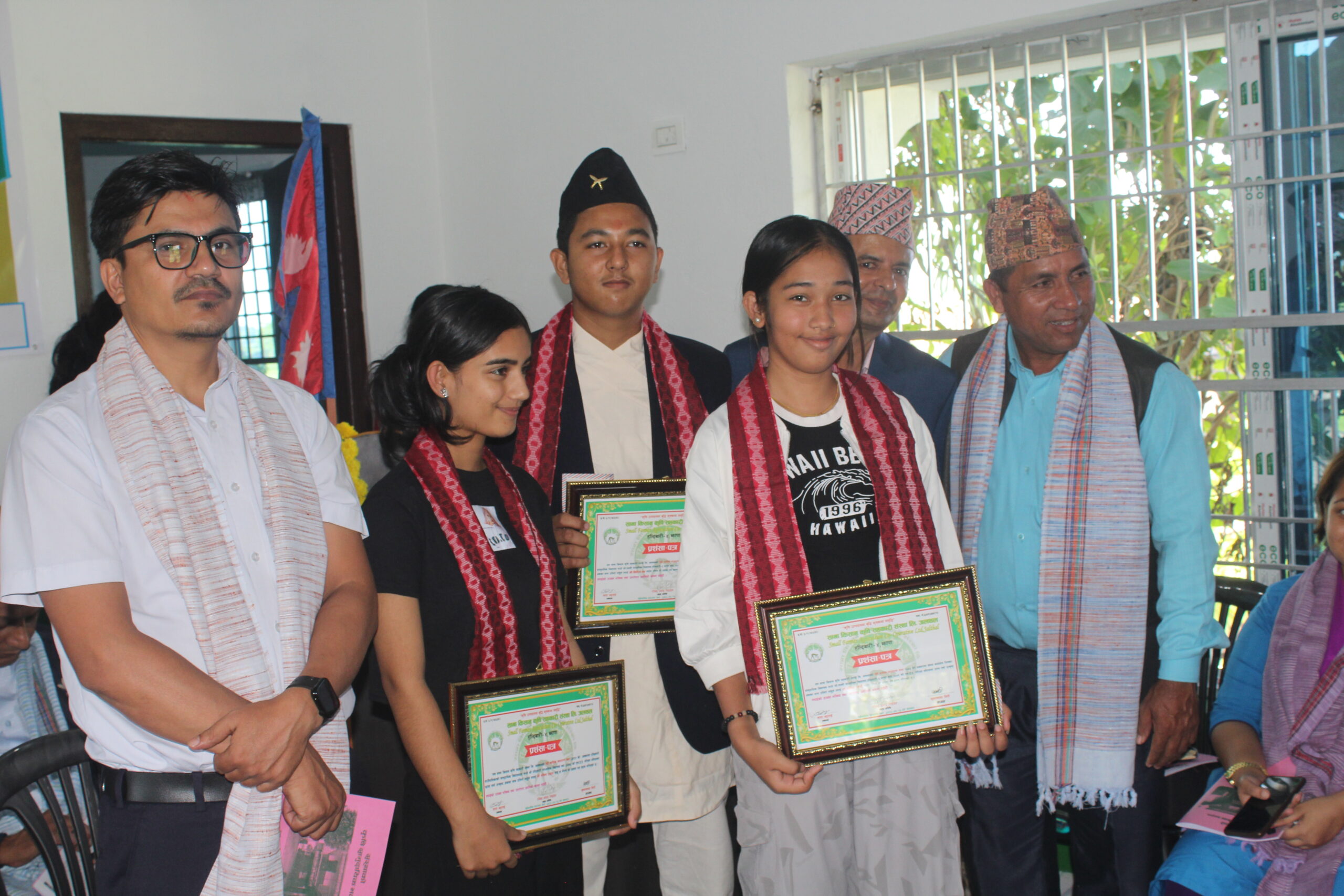त्यसैगरी गत शैक्षिक वर्ष २०७९ को एसईई परीक्षामा सामुदायिक विद्यालयका विद्यार्थीहरु मध्ये उत्कृष्ट अंक ल्याउन सफल हल्दीबारी माध्यमिक विद्यालयका आयुष काफ्ले र शलिना दाहाल तथा लक्ष्मी माध्यमिक विद्यालयका सम्रिता पाण्डे र क्षितिज वन रहेका छन् । उनीहरुलाई प्रशंसापत्र र नगद पुरस्कासहित सम्मान गरिएको थियो ।