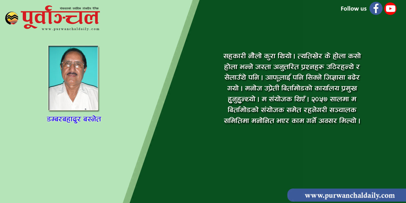 (बस्नेत नेपाल बहुउदेश्यीय सहकारी संस्थाका निवर्तमान सञ्चालक सदस्य हुन् ।)