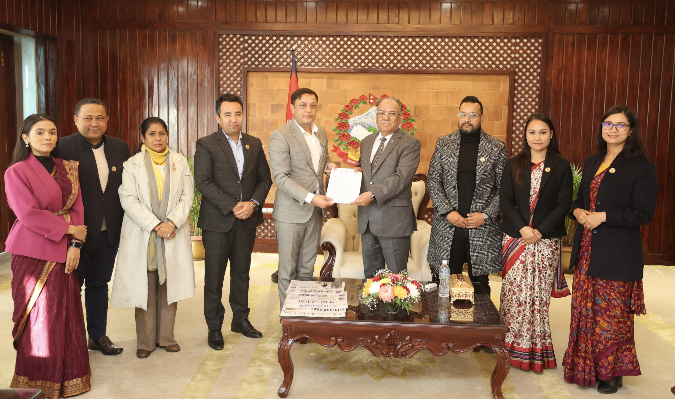 राष्ट्रिय स्वतन्त्र पार्टीका कार्यवाहक सभापति डोलप्रसाद अर्यालको नेतृत्वमा आएको प्रतिनिधिमण्डलले बालुवाटारमा बुझाएको ज्ञापनपत्र बुझ्दै प्रधानमन्त्री दाहालले युरोपेली सङ्घको कालोसूचीबाट नेपालको हवाई क्षेत्र हटाउन सरकार निरन्तर प्रयत्नशील रहेको बताउनुभयो ।