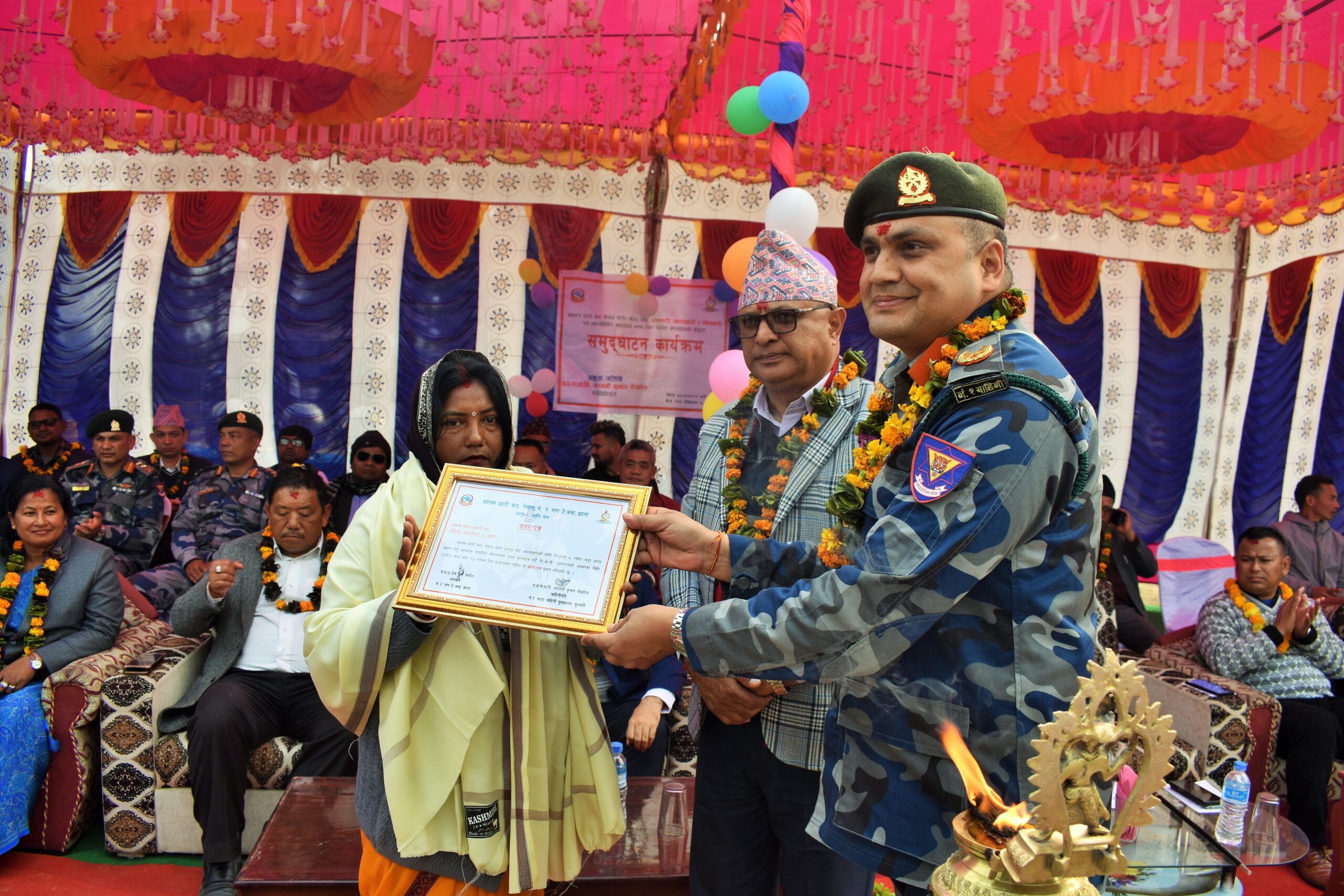 कार्यक्रममा बीओपी स्थापनाका लागि जग्गा दिने दाताहरुलाई सम्मान गरिएको थियो । लालमाटीका जग्गादाता बिनिता लिम्बू, अल्तामारीका जग्गादाता बबिताकुमारी साह र डाँगाबारीका जग्गादाता उपेन्द्रप्रसाद आचार्यलाई दोसल्ला र सम्मान पत्रले सम्मानित गरिएको थियो । लिम्बूले सात कठ्ठा, साहले पाँच कठ्ठा र आचार्यले सात कठ्ठा जग्गा उपलब्ध गराएका थिए ।