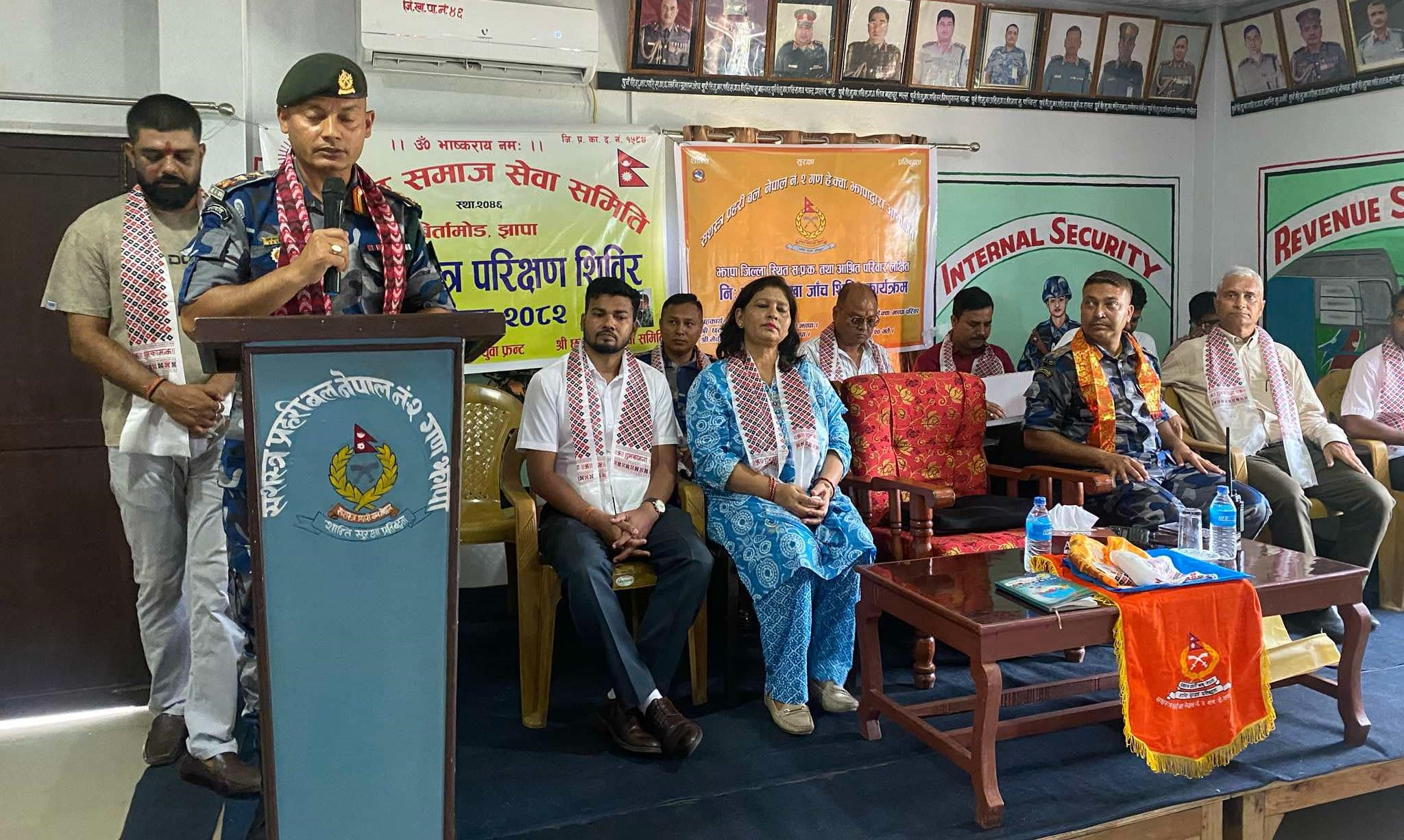 छठ सेवा समितिकी अध्यक्ष संगीता रौनियारको अध्यक्षतामा भएको कार्यक्रमको संयोजक अशोक चौधरी रहेका थिए । सशस्त्र प्रहरी उपरीक्षक तुलबहादुर भण्डारीको प्रमुख आतिथ्यमा भएको कार्यक्रममा प्रहरी नायव उपरीक्षक सुमन पोखरेल र मदन रसाइली समाजसेवी सुरज रौनियार, मेची आँखा अस्पतालका ओपीडी इञ्चार्ज सन्तोषलाल कर्ण लगायतको आतिथ्य रहेको थियो ।