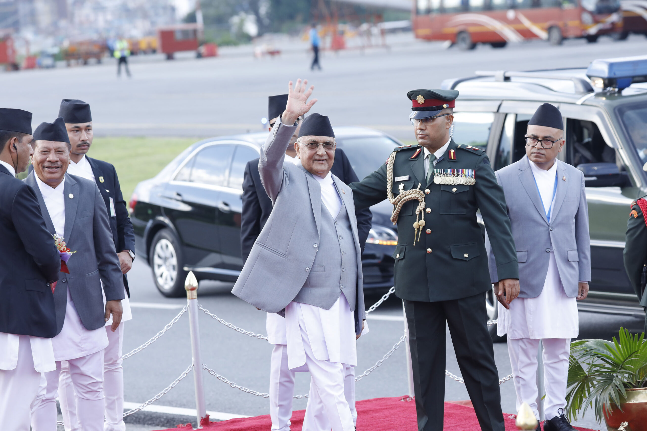 प्रधानमन्त्री ओलीलाई त्रिभुवन अन्तर्राष्ट्रिय विमानस्थलको अतिविशिष्ट कक्षमा उपप्रधानमन्त्री एवं सहरी विकासमन्त्री प्रकाशमान सिंह, गृहमन्त्री रमेश लेखक, संस्कृति, पर्यटन तथा नागरिक उड्डयनमन्त्री बद्रीप्रसाद पाण्डे र मुख्यसचिव एकनारायण अर्यालले बिदाइ गर्नुभयो । प्रधानमन्त्रीको बिदाइका लागि विमानस्थमा उच्च पदस्थ सरकारी अधिकृत एवं सुरक्षा निकायका प्रमुख उपस्थित हुनुहुन्थ्यो ।