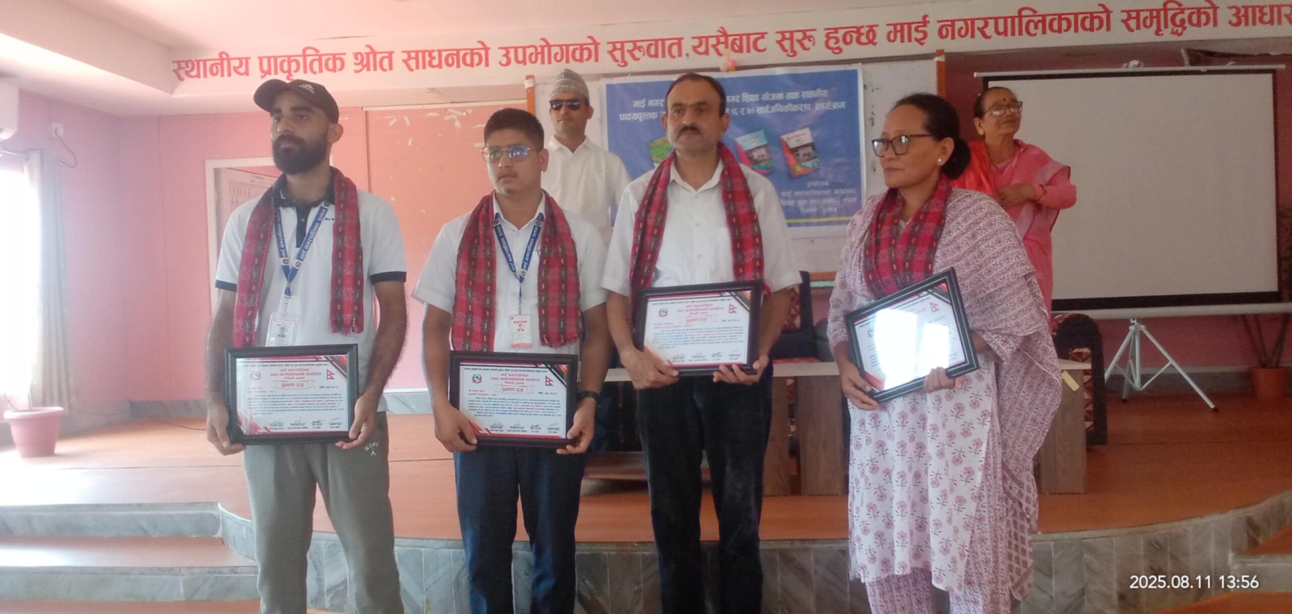 यस्तै पुस्तक निर्माणमा सम्पादन गर्नुहुने शिक्षकहरु किरण प्रसाद सुवेदी, खेमराज लिम्बु, तारानाथ खनाल, विजय तामाङ, रुद्र बहादुर मगर र सुन्दरमणि बिसी लाई सम्मान गरिएको थियो। नगर शिक्षा योजना तथा पाठ्यक्रम निर्माणमा सहयोग गर्नुहुने माई नगरपालिका प्रशासन शाखा प्रमुख लक्ष्मण भुर्तेल, योजना शाखा प्रमुख हिमाल तिम्सिना र लेखा प्रशासन शाखा प्रमुख अशोक कट्टेल, कार्यपालिका सदस्य तेज कुमारी लिम्बुलाई समेत सम्मान गरिएको थियो।