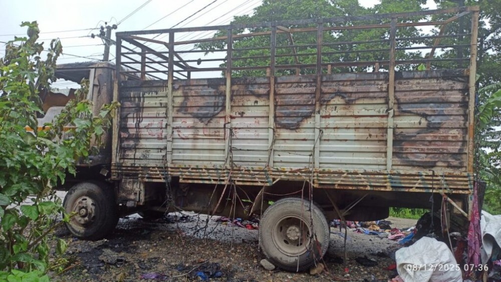 झापाको दमकमा कपडा लोड भएको ट्रकमा अचानक आगलागी भएको छ ।