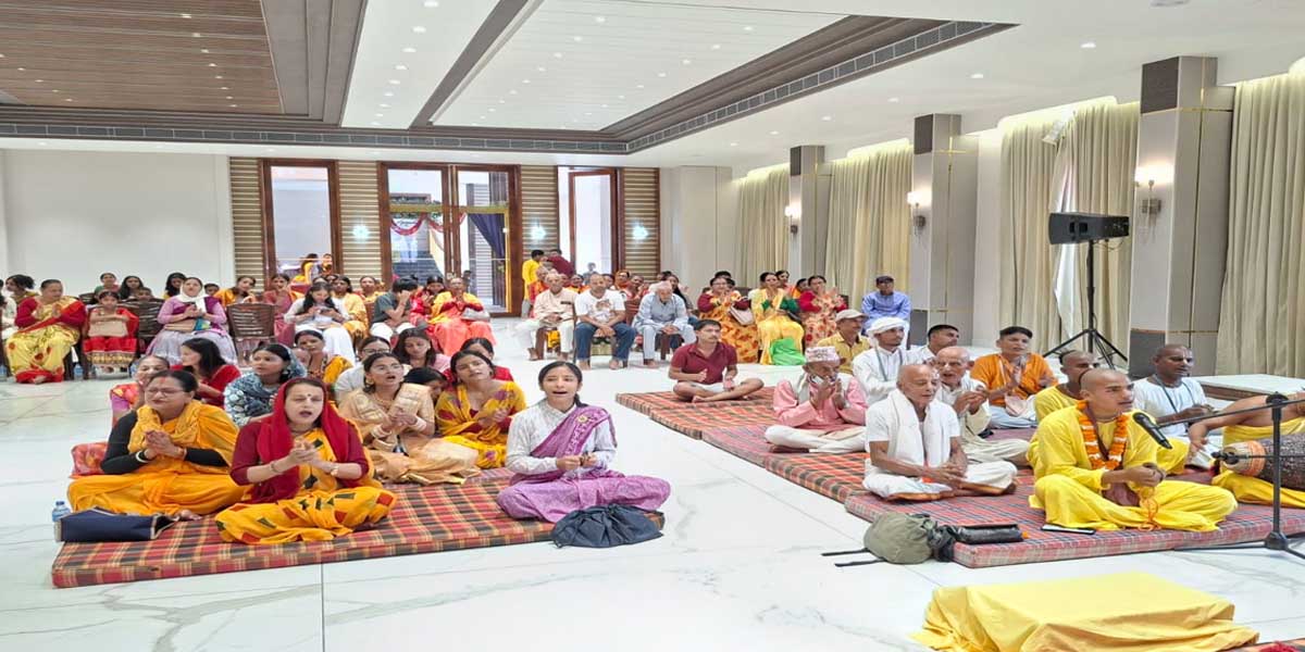 विहान ७ः३० बजेबाट राधा कृष्णको कथा,प्रवचन सहित भजन कीर्तन गर्दै भवन परिसरमा सयौं भक्तजनले भगवान श्रीकृष्णको गाथा गाइरहेका छन् ।