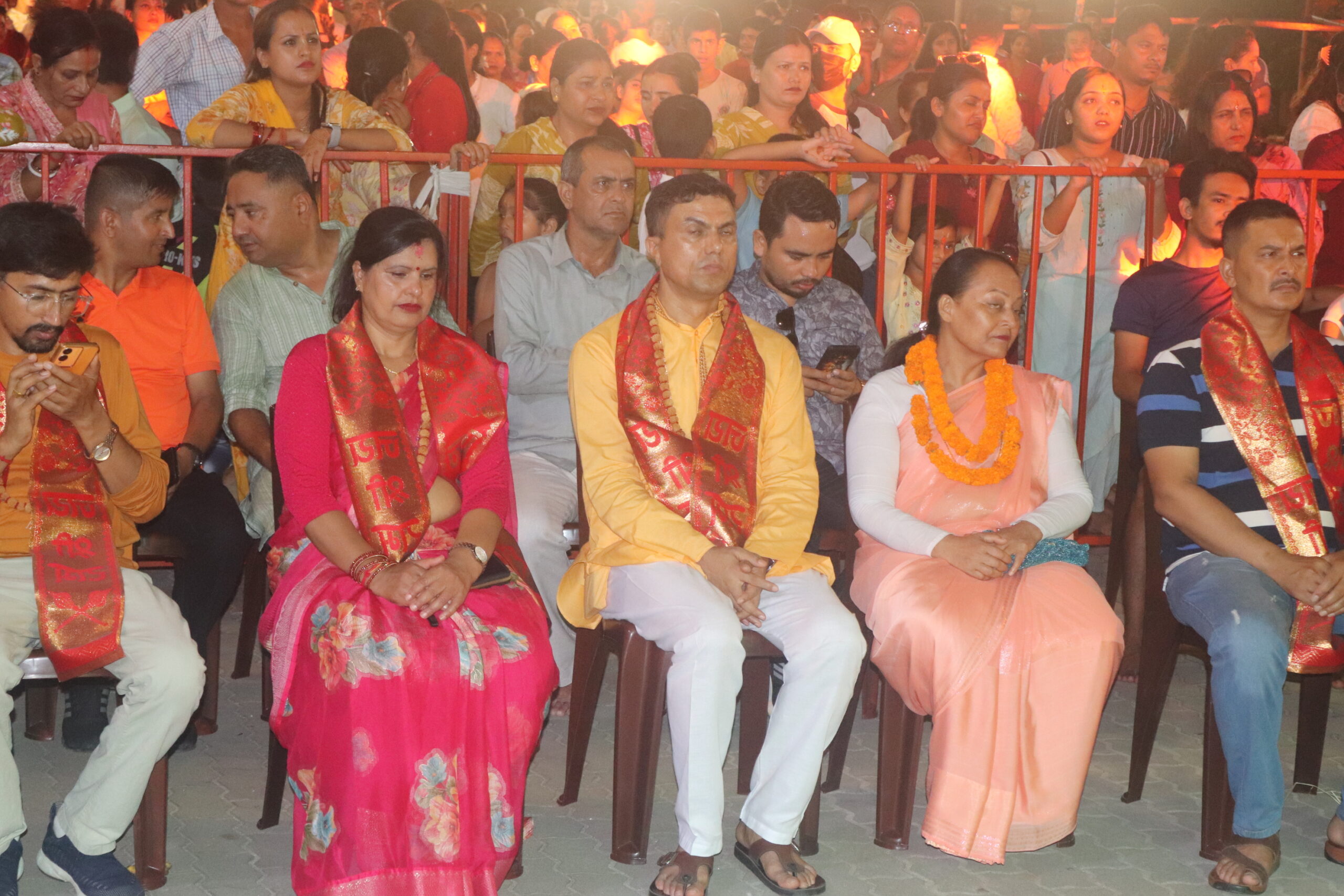राति ७ः३० वजेदेखि भजन गायक राजु अधिकारी र रोशन अधिकारीले भगवन श्री कृष्ण र राधाका भजन प्रस्तुत गर्दै भक्तजनलाई मनोरञ्जन प्रस्तुत गरेका थिए ।