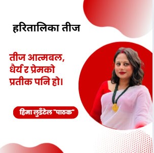 तीज: सशक्तिकरणको उत्सव आज तीजमा हामी महिलाहरूले कृत्रिम गहना, सामान्य साडी लगाएर पनि आत्मविश्वासका साथ रमाइरहेका छौ। हामीहरू आफैं कमाउँछौ, आफैं खर्च गर्छौ, आफैं निर्णय गर्छौ ,सशक्तिकरण हो, जसले तीजलाई अझ अर्थपूर्ण बनाएको छ।
