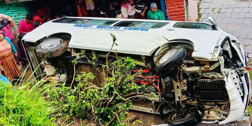 हरिचौरबाट हटिया जाँदै गरेको क्याम्पसको ग१झ ७४३ नं को भ्यान दुर्घटनामा परेको इलाका प्रहरी कार्यालय गलकोटले जनाएको छ ।