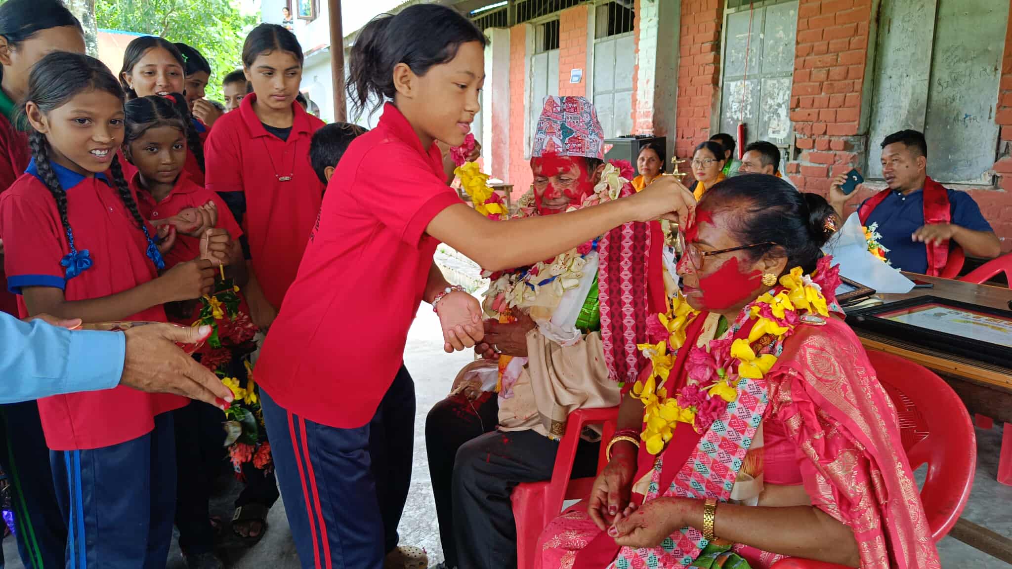 विद्यालयका प्रधानाध्यापक विजयकुमार चौधरीले बोल्दै गर्दा शब्द अड्किए । स्वर टुट्यो । उनका आँखाबाट आँसु बग्यो। ‘पूर्ण सरले नै मलाई आज यो स्थानमा पुर्याउनुभयो। उहाँसँग लामो समय बिताउँदा एकपटक पनि तुच्छ शब्द सुनिनँ। विद्यालयको गुणस्तर र पूर्वाधार सुधारमा उहाँको योगदान अमूल्य छ,’उनले भने।