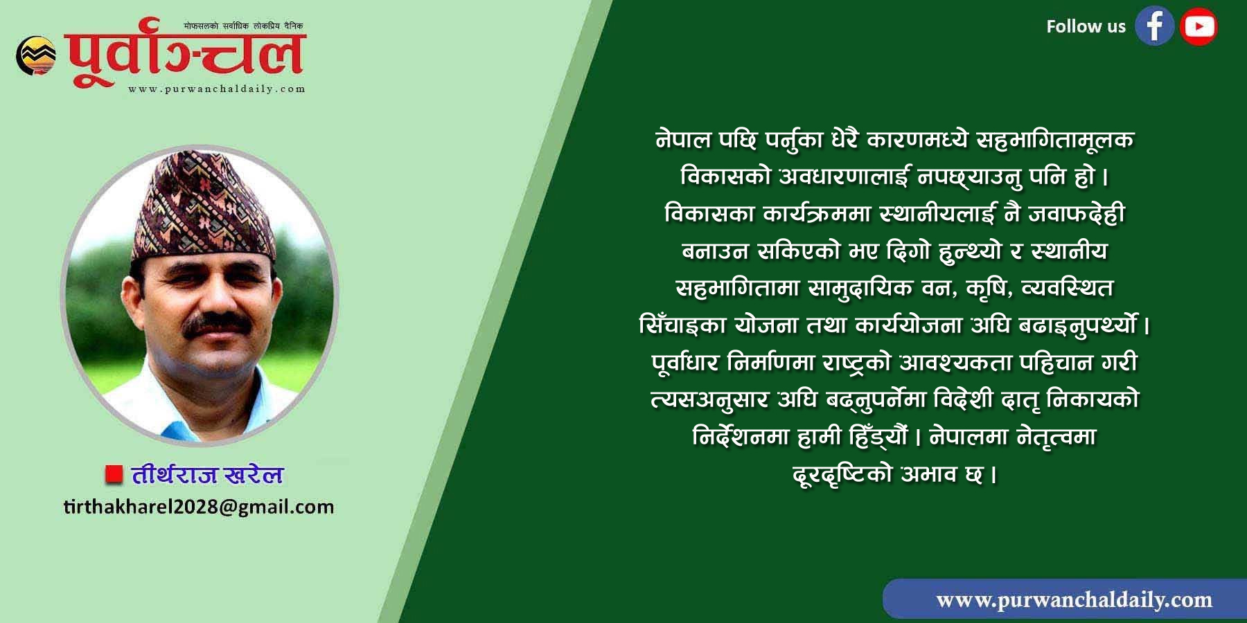वर्तमान सिङ्गापुरको एक सच्चा निर्माता लीले एसिया र विश्वलाई नै सफलता र इमान्दारिताको पाठ सिकाउन सफल भए । आजको मूल प्रश्न छ– नेपाल किन पछि प¥यो ? नेपाल पछि पर्नुका धेरै कारणमध्ये सहभागितामूलक विकासको अवधारणालाई नपछ्याउनु पनि हो । विकासका कार्यक्रममा स्थानीयलाई नै जवाफदेही बनाउन सकिएको भए दिगो हुन्थ्यो र स्थानीय सहभागितामा सामुदायिक वन, कृषि, व्यवस्थित सिँचाइका योजना तथा कार्ययोजना अघि बढाइनुपथ्र्यो । पूर्वाधार निर्माणमा राष्ट्रको आवश्यकता पहिचान गरी त्यसअनुसार अघि बढ्नुपर्नेमा विदेशी दातृ निकायको निर्देशनमा हामी हिँड्यौं । नेपालमा नेतृत्वमा दूरदृष्टिको अभाव छ । लक्ष्य निर्धारण पूरा गर्ने सङ्कल्पतिर लाग्ने स्वप्नद्रष्टा नेता आजको नेपालको आवश्यकता हो । तर, हाम्रो देशमा पालो दिने परम्पराले जरा गाड्न थालेको छ । सामन्ती संरक्षकत्ववादी नीतिले मुलुक प्रगतिको बाटोमा लाग्न सक्दैन ।