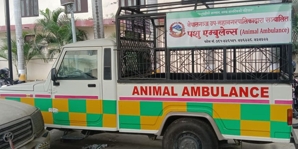 नेपालगञ्ज उपमहानगरपालिकाले घाइते वा अशक्त जनावरलाई उद्धारका लागि ‘एनिमल एम्बुलेन्स’ सञ्चालनमा ल्याएको छ ।