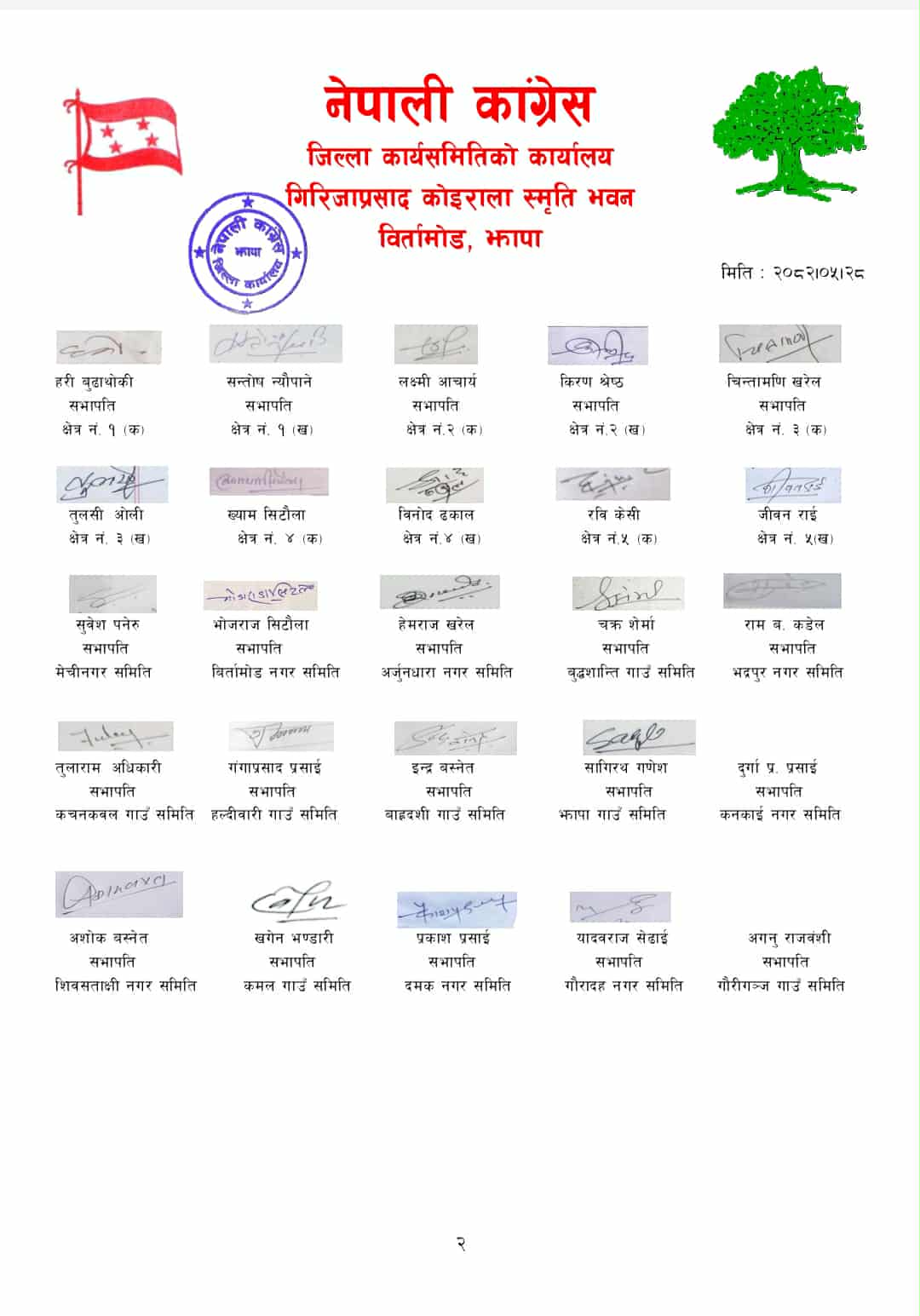 बिर्तामोड , नेपाली काङ्ग्रेस झापा र मातहतका क्षेत्रीय, प्रदेशसभा क्षेत्रीय, गाउँ– नगर समितिले नवनियुक्त प्रधानमन्त्री सुशीला कार्कीको सिफारिसमा भएको संसद विघटनको निर्णय असम्बैधानिक रहेको ठहर गरेको छ ।