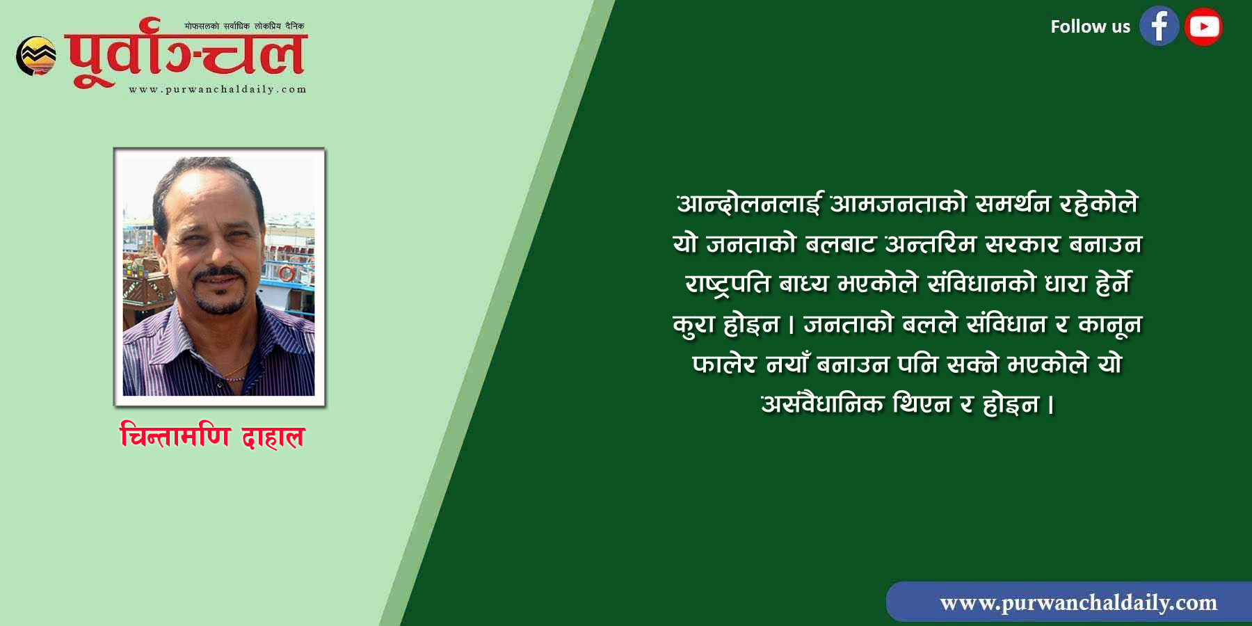 तर, आमजनताको समर्थनबाट सफल भएको जेन–जीको आन्दोलनलनई विद्रोह बनाउन तारतम्य शुरु भएको आशंका छ । अन्तरिम सरकारलाई असफल बनाउन र विघटित प्रतिनिधि सभा ब्यूँताउने खेल शुरु भएको छ । केही दिन दुला पसेका दलहरु अन्तरिम सरकार असंवैधानिकरुपले गठन भएको भनेर सडकमा सल्बलाउन थालेका छन् । उनीहरुका झोले संविधानविद् र अधिवक्ताहरु पनि विभिन्न तर्क–कुतर्क गरिरहेका छन् । यसबाट होसियार बनौं । कुरा धेरै छन् । आज यति नै ।