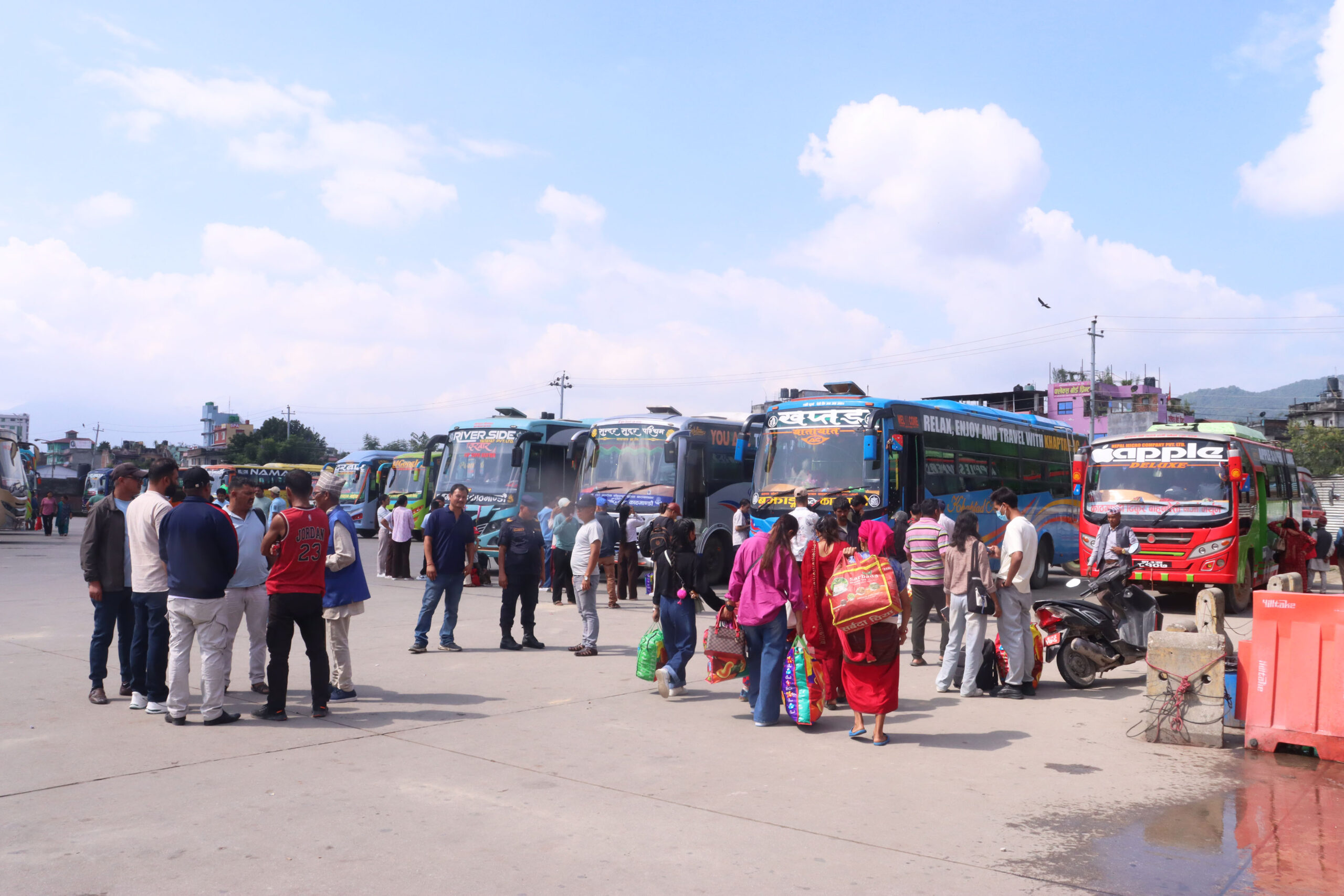 काठमाडौँ गोँगबुस्थित राष्ट्रिय बसपार्क नयाँ बसपार्कमासमेत दसैँमा घर जाने यात्रुको चाप बढ्न थालेको छ । नयाँ बसपार्क सञ्चालन गरेको लोत्से बहुउदेश्यीय प्रालिका महाप्रबन्धक सुनिल कुँवरले नयाँ बसपार्कबाट दैनिक ५०० बस बाहिरिन थालेको बताउनुभयो ।