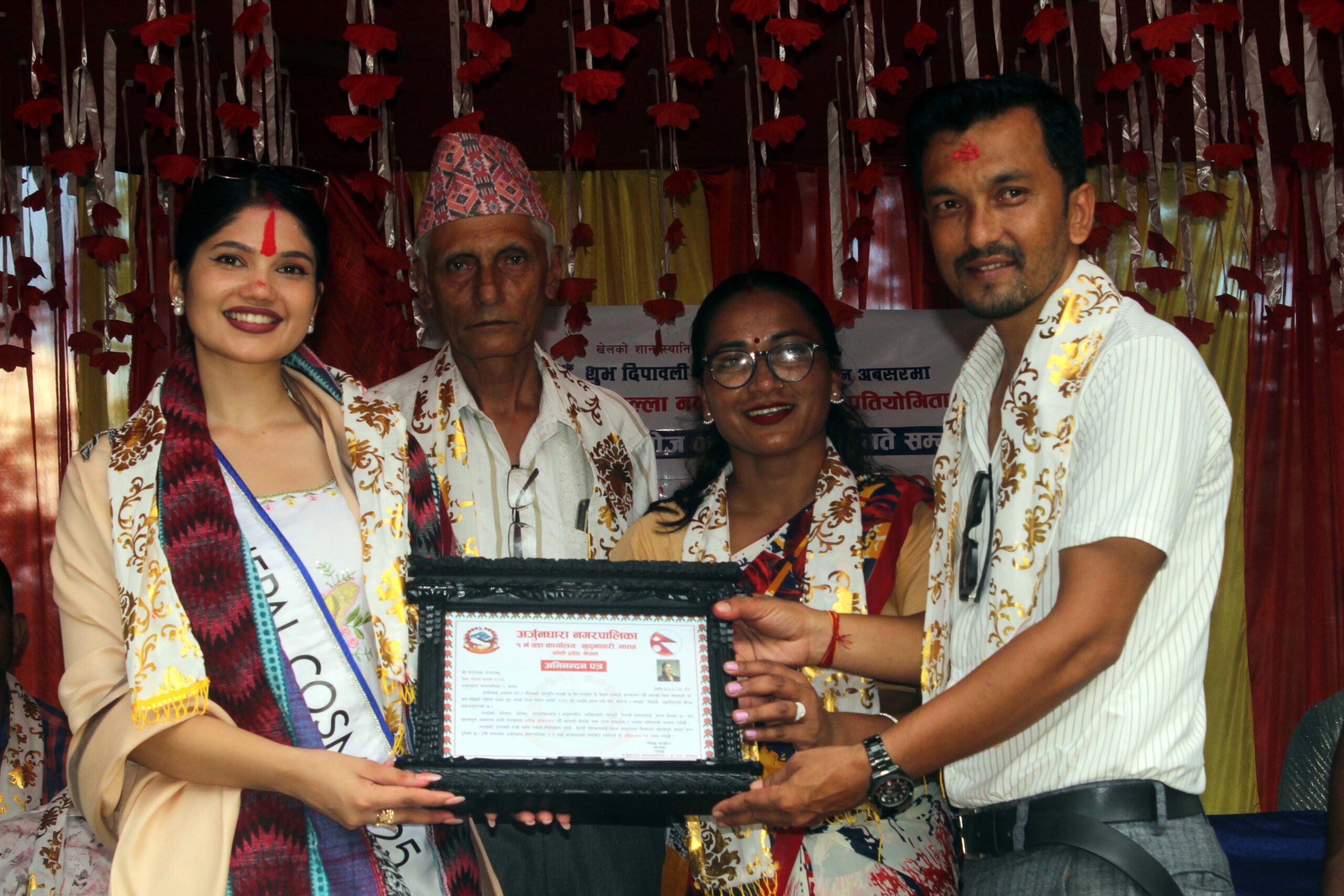 मिस नेपाल कसमो २०२५कि उपाधि विजेता अर्जुनधारा नगरपालिका–१ निवासी दिपशिखा नेपाललाई आइतबार एक कार्यक्रमकोबीच अभिनन्दन गरिएको छ ।
