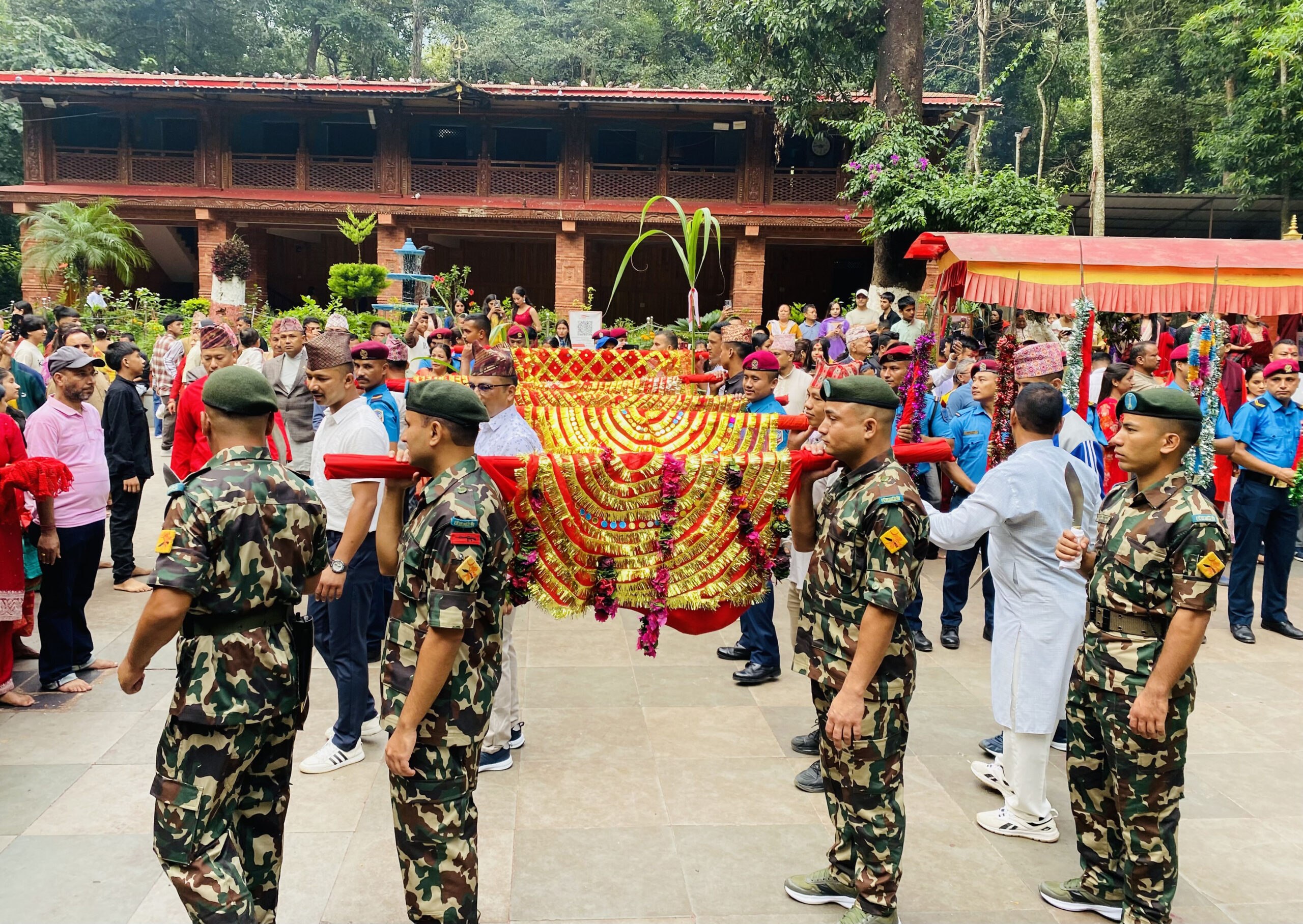 गोरखाबाट धादिङको जीवनपुरसम्म दसैँघरका पूजारीसहित मगर जातिका छ जनाले ल्याउने र त्यहाँबाट काठमाडौँको जमलसम्म काठमाडौँबाट गएका ब्राह्मण जातिका छ जनाले ल्याउने परम्परा रहेको हनुमानढोका दरबार हेरचाह अड्डाका कार्यालय प्रमुख काजीमान प्याकुरेलले जानकारी दिनुभयो ।