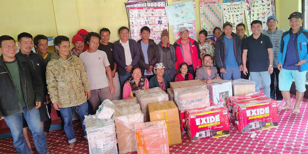 मञ्चका अध्यक्ष घनबहादुर फगामी, सचिव तथा म्याग्दी प्रवासी नेपाली मञ्च (मोना)का कोषाध्यक्ष नरेन्द्र फगामी, पूर्ववडाध्यक्ष पिपला बुढालगायतले विद्यालय व्यवस्थापन समितिका अध्यक्ष तुलप्रसाद बुढाथोकी र प्रअ अमृत बृढाथोकीलाई सामग्री हस्तान्तरण गर्नुभएको थियो ।