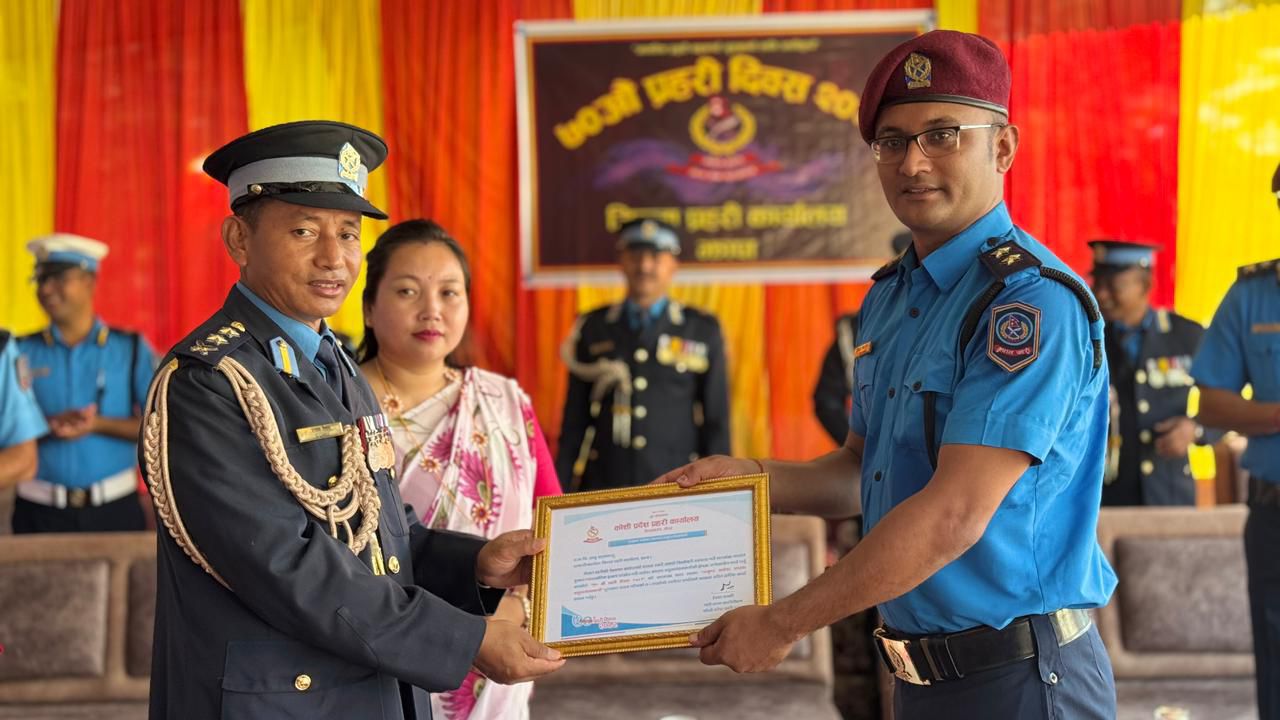 नेपाल प्रहरीको पेशागत मर्यादालाई कायम राख्दै आफ्नो जिम्मेवारीसम्पन्न गर्ने सन्र्दभमा कुशल ब्यवसायीक क्षमता प्रर्दशन गर्दै लागूऔषध अपराध अनुसन्धानको क्षेत्रमा उल्लेखनीय कार्य गरेको जिल्ला प्रहरी कार्यालय झापामा कार्यरत प्रहरी निरीक्षक विजय चौहान र साइबर अपराध अनुसन्धानकर्ताको क्षेत्रमा उल्लेखनीय कार्यकगरेको भन्दै जिल्ला प्रहरी कार्यालय झापामा नै कार्यरत रहेका प्रहरी नायव निरीक्षक ज्ञानु खड्कालाई कोशी प्रदेश प्रहरी कार्यालय विराटनगरले सम्मान गरेको हो ।