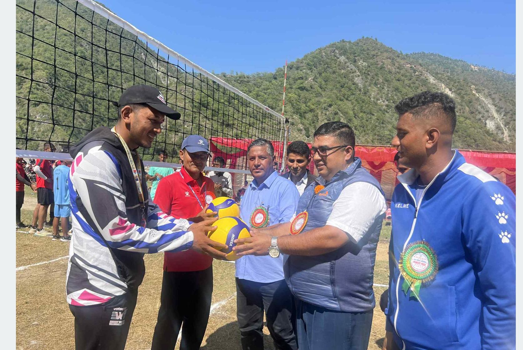 उक्त पालिकाको वडा नं १ च्याकुटारबेँसी खेल मैदानमा आयोजित प्रतियोगिताको पालिका प्रमुख शङ्करराज बराल र ज्वालाप्रसाद न्यौपानेले निर्णायक(रेफ्रि)लाई बल हस्तान्तरण गरी संयुक्त रूपमा उद्घाटन गर्नुभयो ।