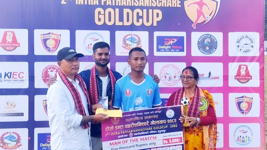 आजको खेलमा मिक्सन दासलाई उत्कृष्ट प्रदर्शनका लागि म्यान अफ द म्याच घोषित गरिएको थियो। उनलाई प्रमुख अतिथि पथरी शनिश्चरे नगरपालिकाकी उपमेयर देवी माया काफ्लेले नगद पाँच हजार रुपैयाँसहित ट्रफी प्रदान गर्नुभयो।