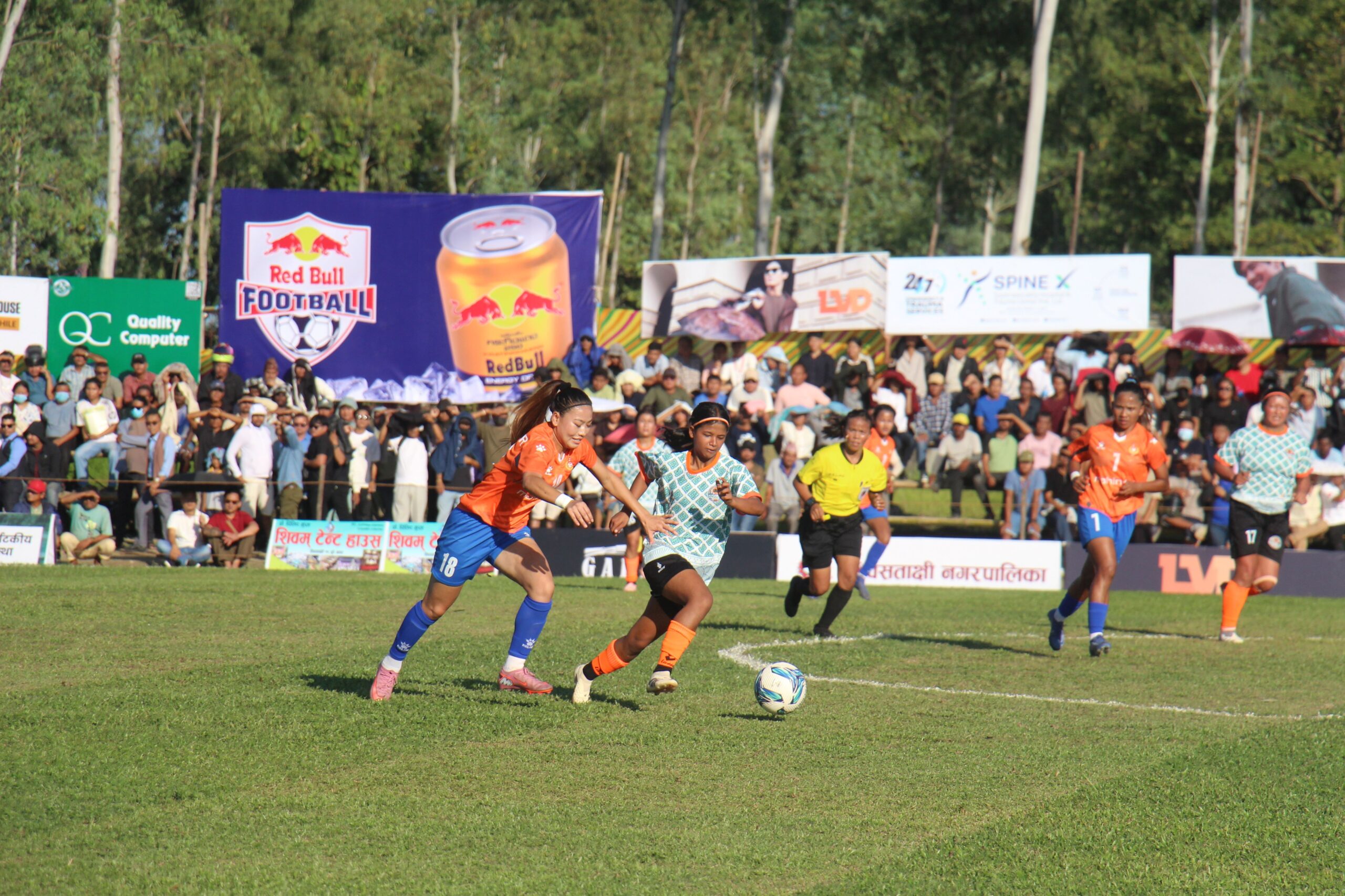 खेलको सुरुवातदेखि नै बल नियन्त्रणमा राख्दै आक्रमणमा केन्द्रित एपिएफले २९ औँ मिनेटमा सविता राना मगरको गोलमार्फत अग्रता लियो । त्यसपछि ३८ औँ मिनेटमा अनिता बस्नेतले सरु लिम्बुले हेडर मिस गरेपछि बललाई फिनिस गर्दै दोस्रो गोल थपिन् ।