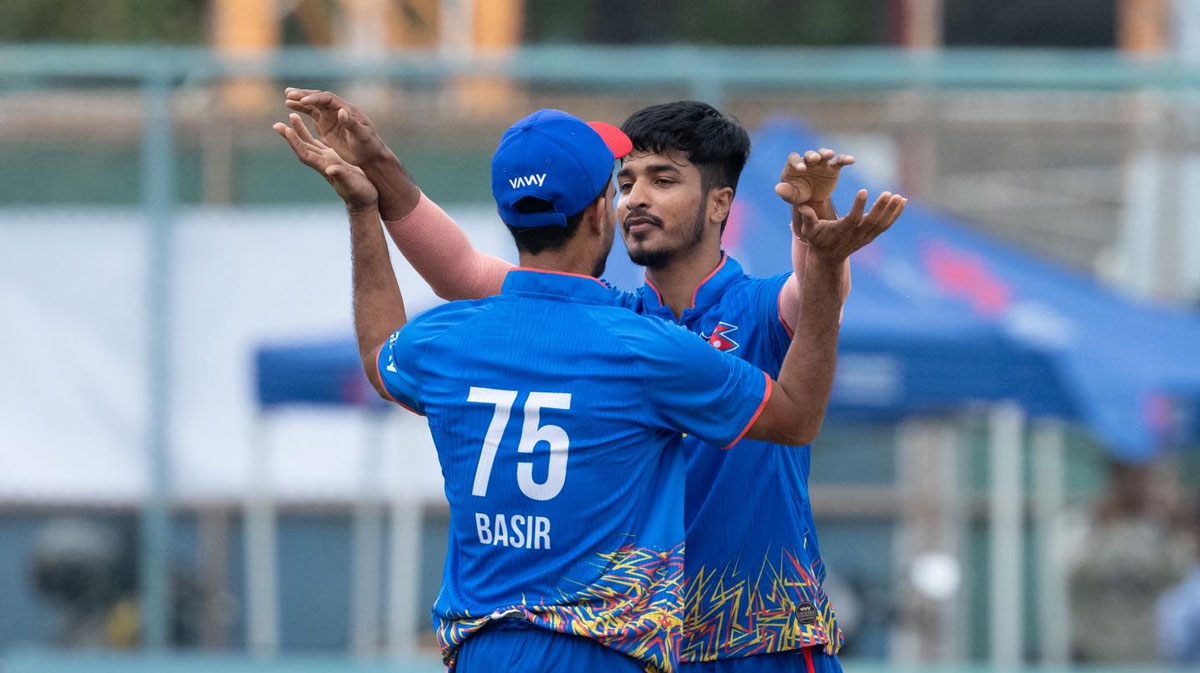 नेपालका लागि रसिद खानले तीन विकेट लिए भने रुपेश सिंह र बसिर अहमदले समान दुई/दुई विकेट लिए ।
