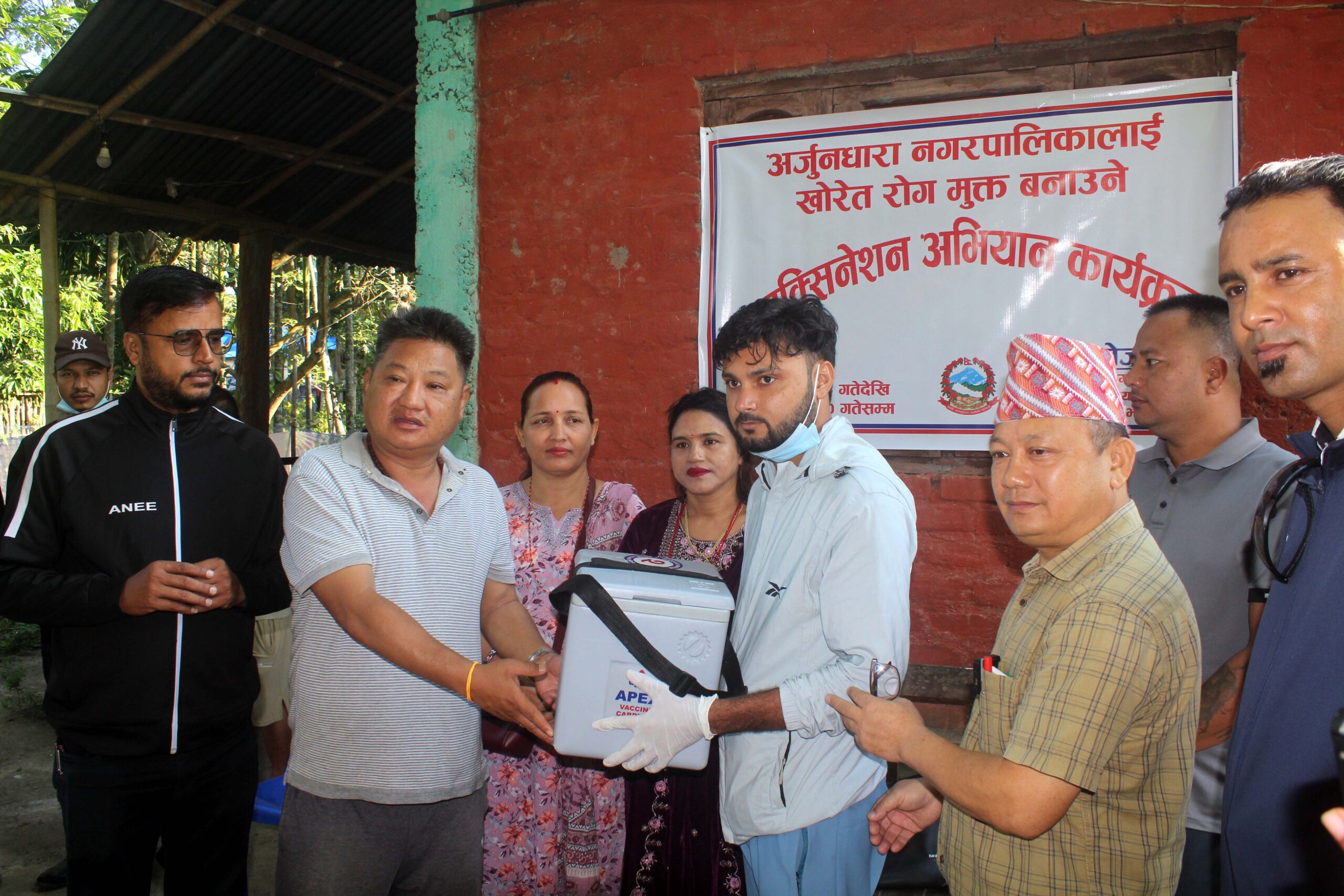अर्जुनधारामा खोरेत रोग बिरुद्धको भ्याक्सिनेसन कार्यक्रम शुरु
