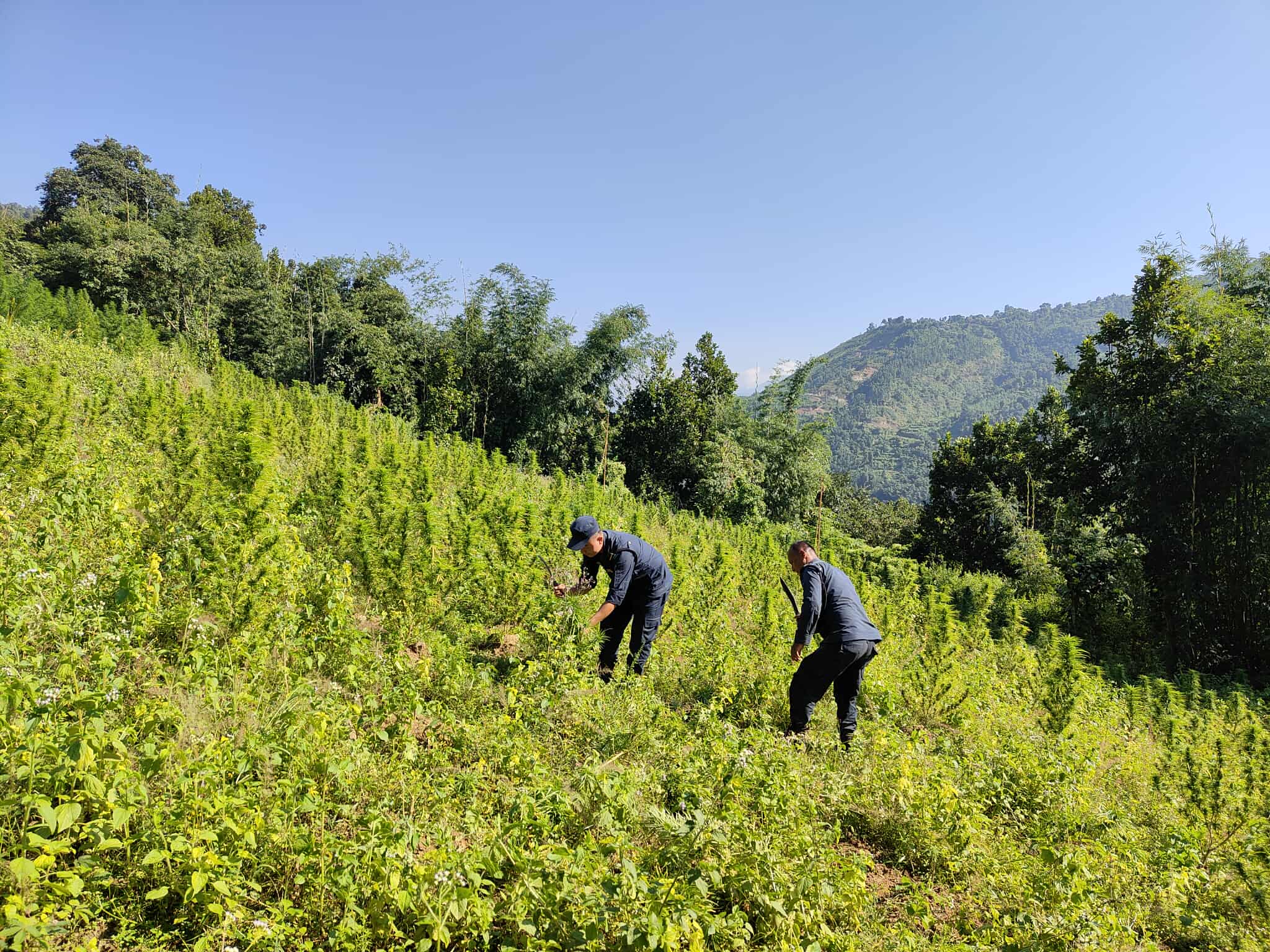 कोशी प्रदेश प्रहरी कार्यालय विराटनगरको सुरक्षा सुनिश्चितता अभियान अन्तरगत अबैध रुपमा लगाएका तथा प्रकृतिक रुपमा आफै उम्रिएका गाँजाका बोटहरु नष्ट गर्न इलाका प्रहरी कार्यालय छिन्ताङबाट कार्तिक २३ गते परिचालन भएको प्रहरी टोलीले शहिदभूमी गाँउपालिका-५ स्थित ५ रोपनी क्षेत्रफलमा रहेका कारिव १० हजार बोट र इलाका प्रहरी कार्यालय राजारानीले चौबिसे गाउँपालिका-५ डाँडाखर्क स्थित ३ रोपनी क्षेत्रफलमा रहेको करिव ४ सय गाँजाको बोट फडानी गरी नष्ट गरेको छ ।