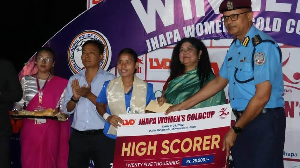 २०८२ कार्तिक १७ गतेदेखि शुरु भएको प्रथम झापा महिला गोल्ड कप फुटवल प्रतियोगिताको उपाधि नेपाल पुलिस क्लबले जितेको छ । १–० गोलको अन्तरले एपीएफलाई हराउदै पुलिसले उपाधि जितेको हो ।