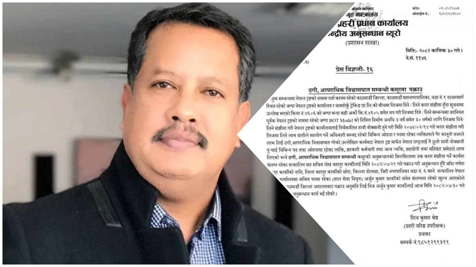 ब्यूरोले उक्त घटनाको अनुसन्धानका क्रममा गत कात्तिक २१ गते ट्रष्टका तत्कालीन सहसचिव लेखबहादुर कार्कीलाई समेत पक्राउ गरेको थियो ।