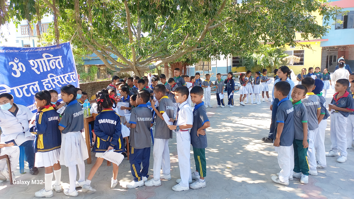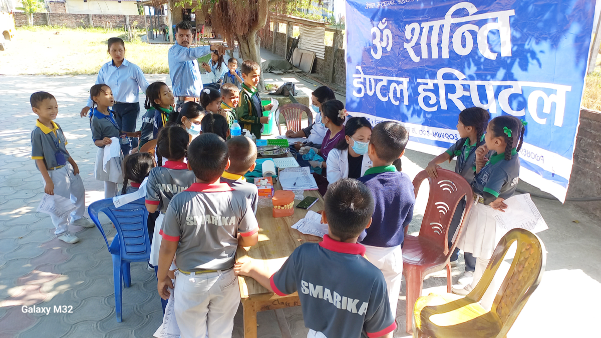ॐ शान्ति डेण्टल हस्पिटल दमकका सञ्चालक कमल प्रसाद गैरेको नेतृत्वमा डेण्टल सर्जन डा.स्मारक दाहाल,डा.माल्लिका श्रेष्ठ र डा.अन्जली ठाकुरको टोलिले विध्यालयमा अध्यायनरत ८ सय ५० जना विध्यार्थिको निःशुल्क डेण्टल परिक्षणका साथै उपचार गर्नु भएको थियो ।
