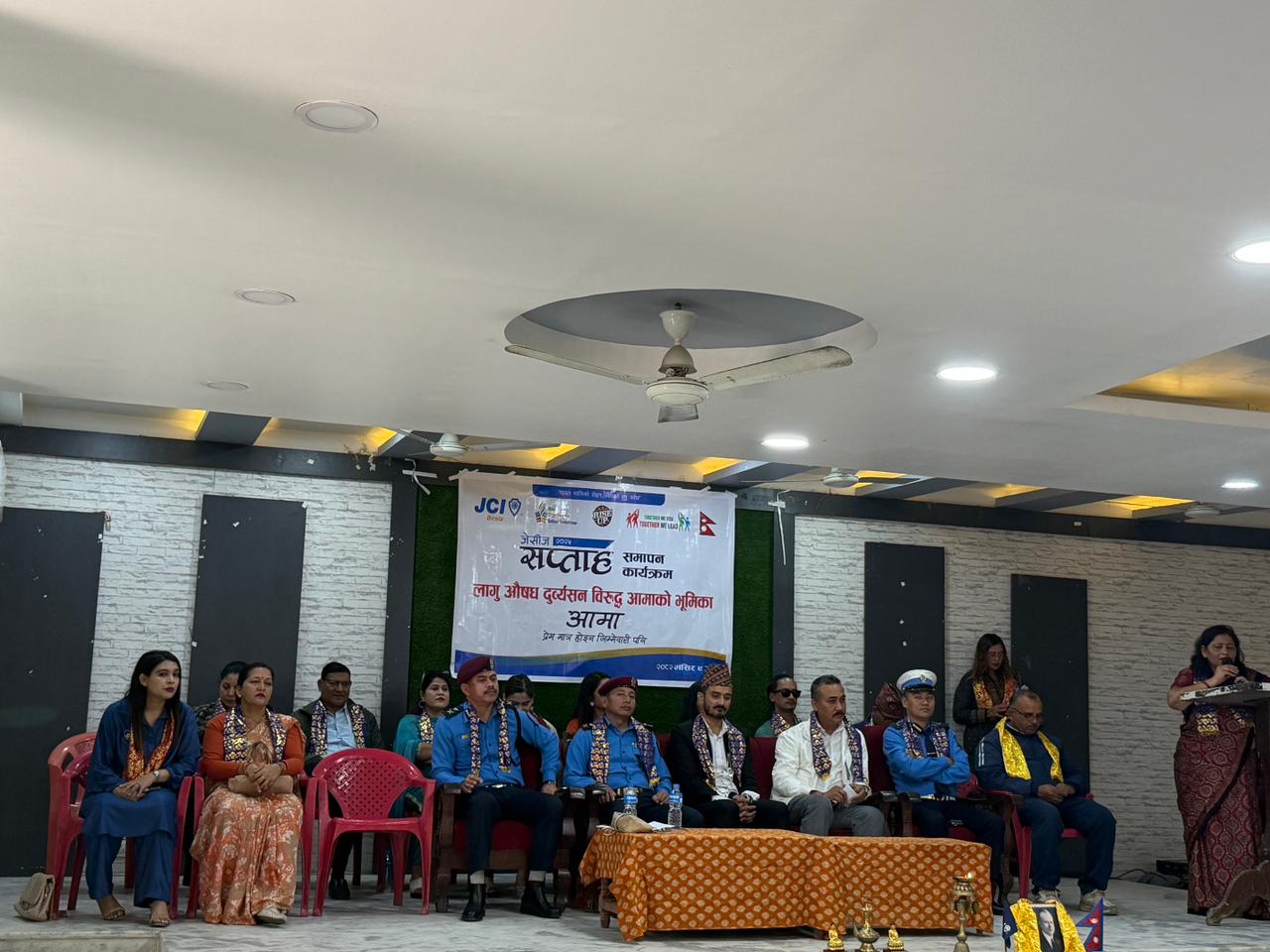 जेसीज सप्ताह समापन कार्यक्रममा अस्था बाचन कानुनी सल्लाहकार अम्मरजीत साहले गरेका थिए भने कार्यक्रमको संयोजन कोषाध्यक्ष लोकचन्द्र श्रेष्ठले गरेका थिए । मिसन भिजन जुनीयर जेसीजकी निसिम थाम्सुहाङले गरेको कार्यक्रमको सञ्चालन महासचिव विज्ञानराज पौडेलले गरेका थिए ।