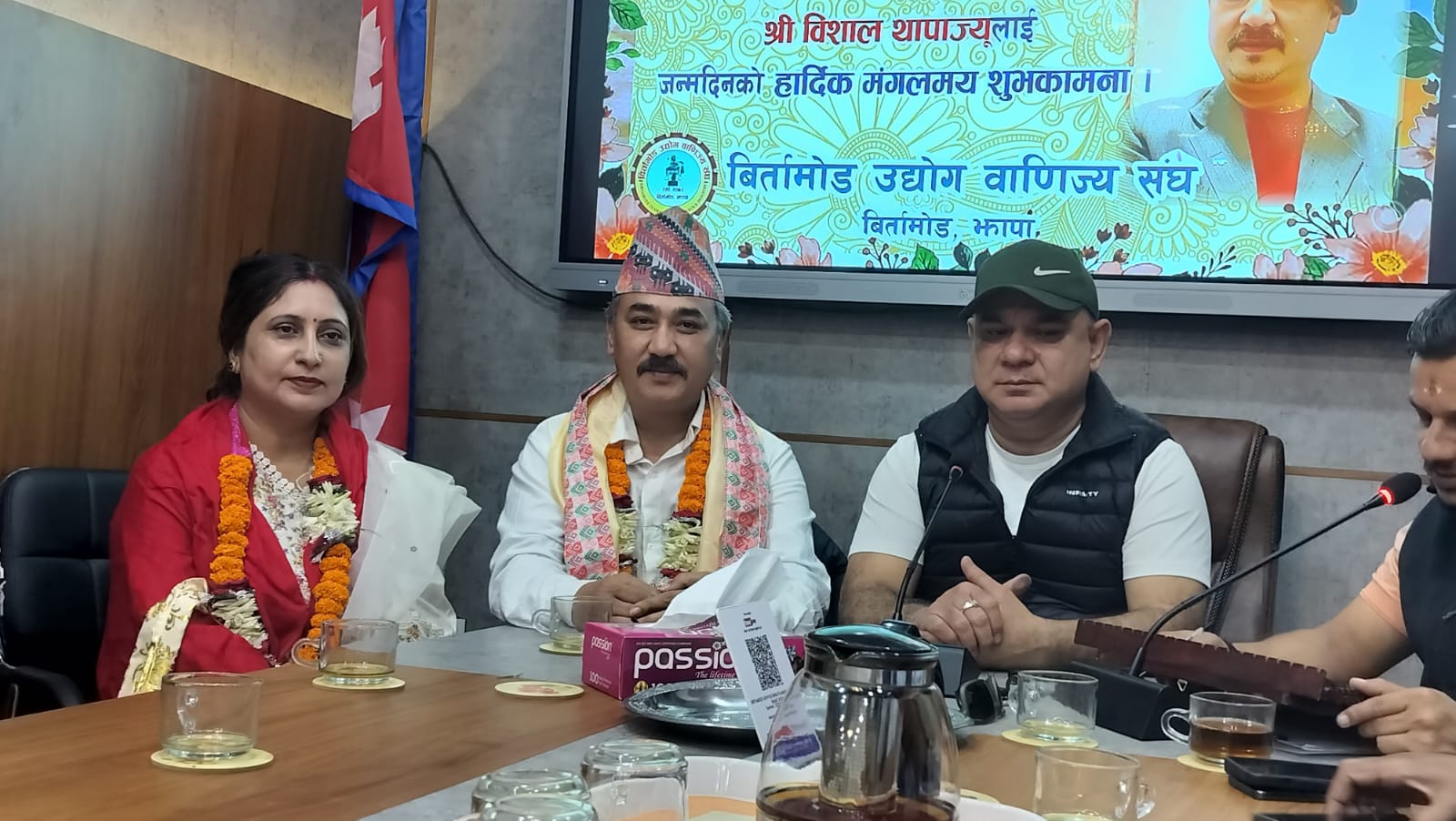 उपाध्यक्ष थापा आफ्नी श्रीमती समृद्धिसहित कार्यक्रममा सहभागी भएका थिए। कार्यक्रममा बिर्तामोड उद्योग वाणिज्य संघले उनलाई कदरपत्रद्वारा सम्मान गरेको छ।