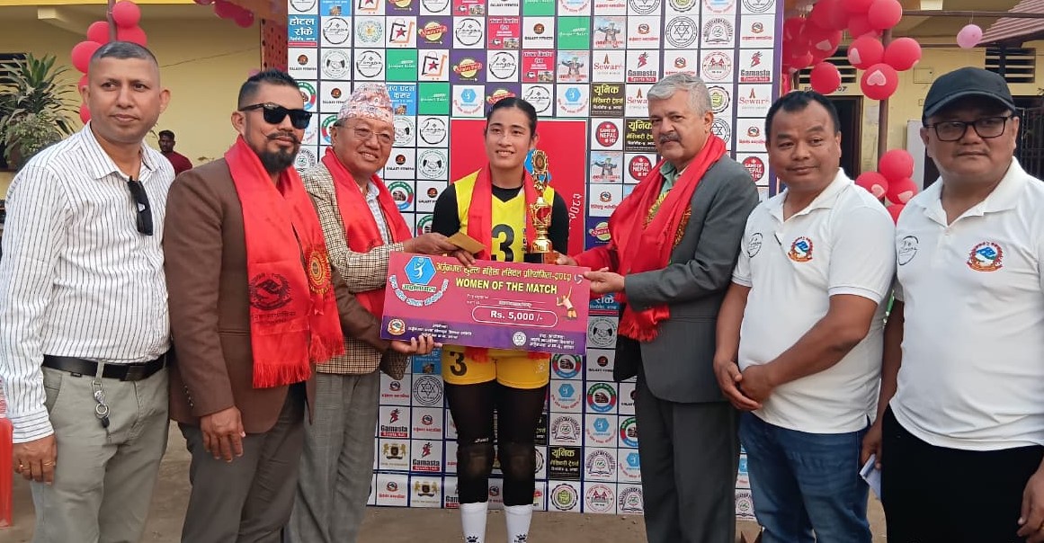 खेलको प्लेयर अफ द म्याच न्यु डायमन्डकी जेनिसा विश्वकर्मा भइन् । उनलाई प्रमुख अतिथि पूर्वकानुनमन्त्री अग्नि खरेल, अर्जुनधारा ६ का वडा अध्यक्ष हरिशचन्द्र बास्तोला, आयोजक अध्यक्ष सुरेन्द्र धिमाल, सहआयोजकका अध्यक्ष वीरबहादुर राईलगायतले नगद पाँच हजार र ट्रफी प्रदान गरे ।