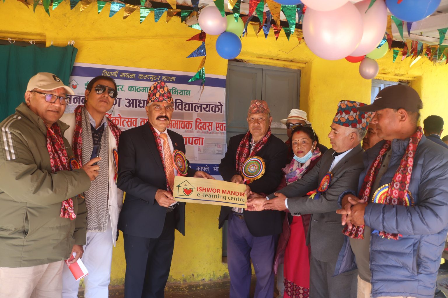 विद्यार्थीहरुलाई समय सापेक्ष प्रविधिमैत्री शिक्षणमा जोड दिन ईश्वर मन्दिर काठमाडौँ अभियानले विद्यालयमा इ–लर्निङ सेन्टर स्थापना गरिदिएको हो । १० थान डेस्कटप कम्प्युटर, एक थान स्मार्ट टिभी उपलब्ध गराइ यहाँ सेन्टर सञ्चालनमा ल्याइएको ईश्वर मन्दिर काठमाडौँका महासचिव सङ्केत कोइरालाले जानकारी दिनुभयो ।