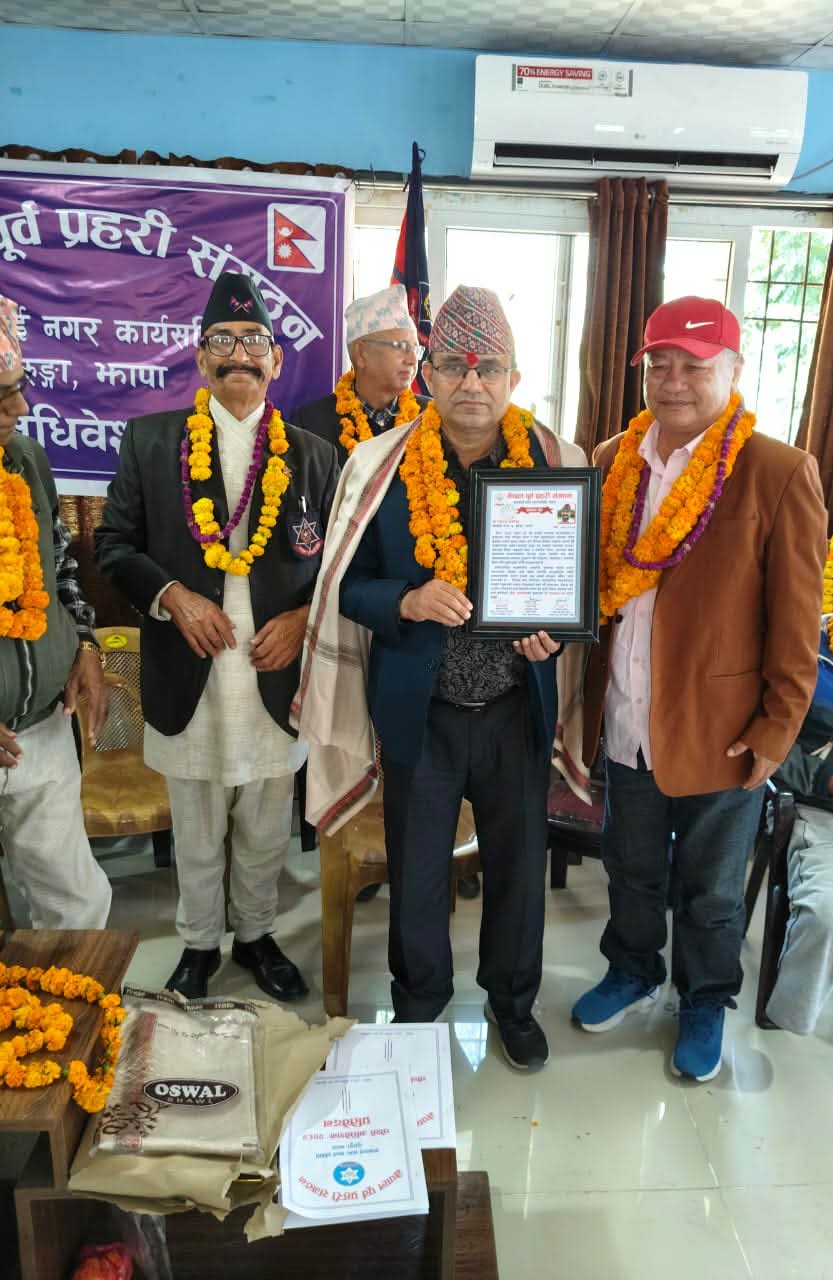 नेपाल पूर्व प्रहरी सङ्गठन कनकाई नगर समितिले पूर्वाञ्चलकर्मी तीर्थराज खरेललाई सम्मान गरेको छ ।